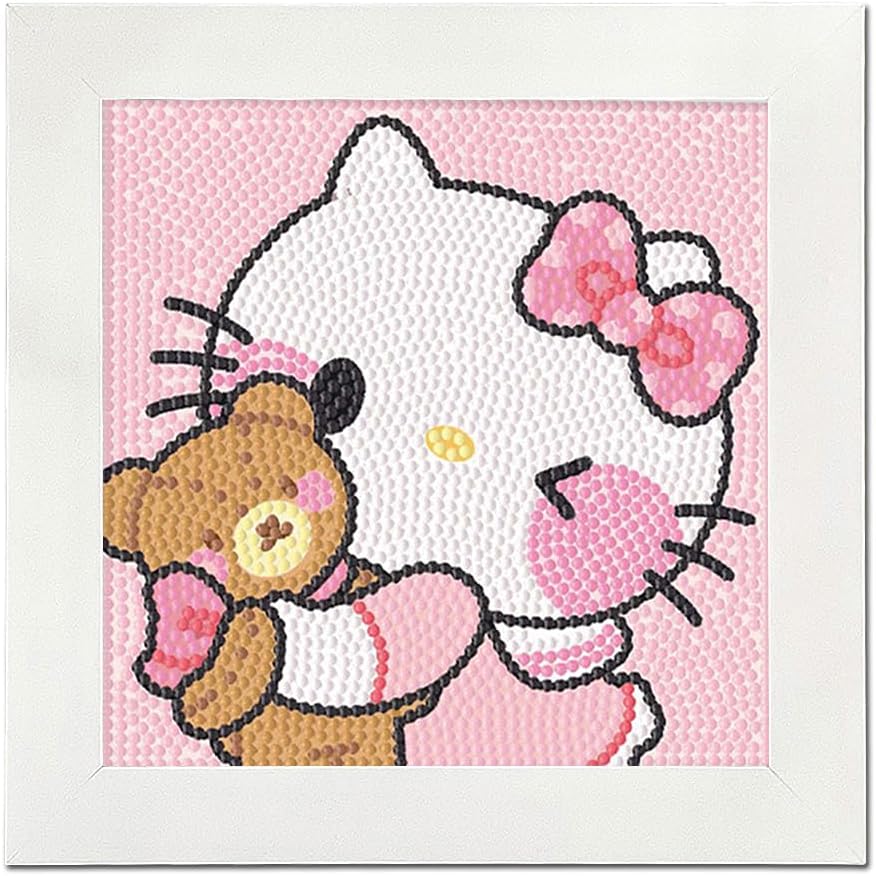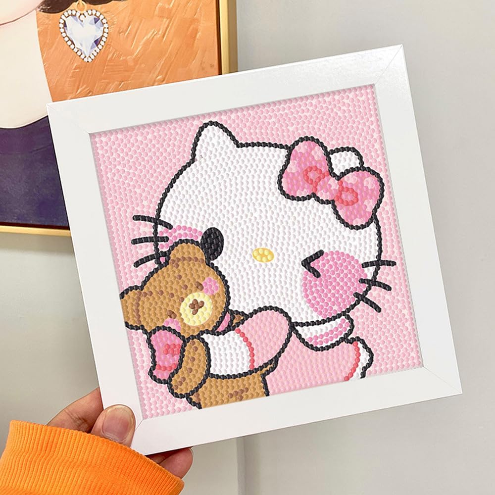 Cute 5D Diamond Art Kits with Wooden Frame,(Pink Kitty)