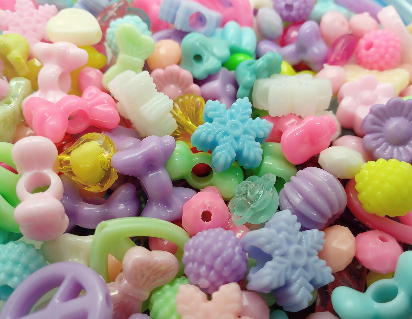 Cute Acrylic Bead Mix, Colorful Mixed Shapes, 160 piece Assortment, Adorabilities.