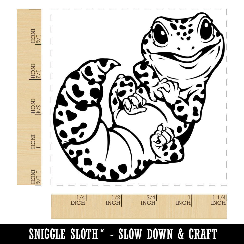 Cute Baby Leopard Gecko Lizard with Spots Square Rubber Stamp for Stamping Crafting