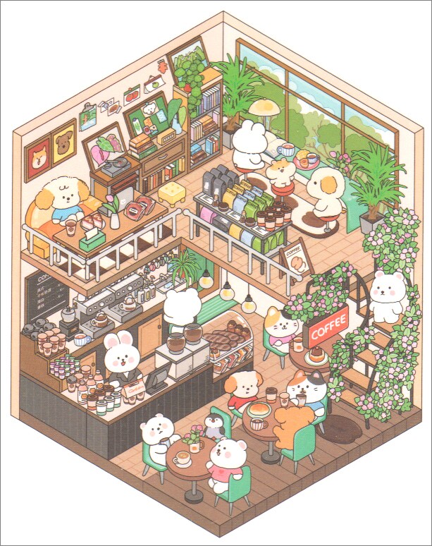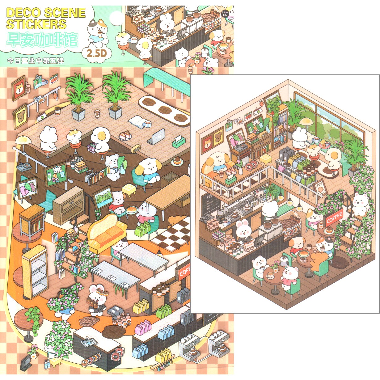 Cute Cafe Room Scene Stickers, Isometric Landscape Sticker Set, Adorabilities