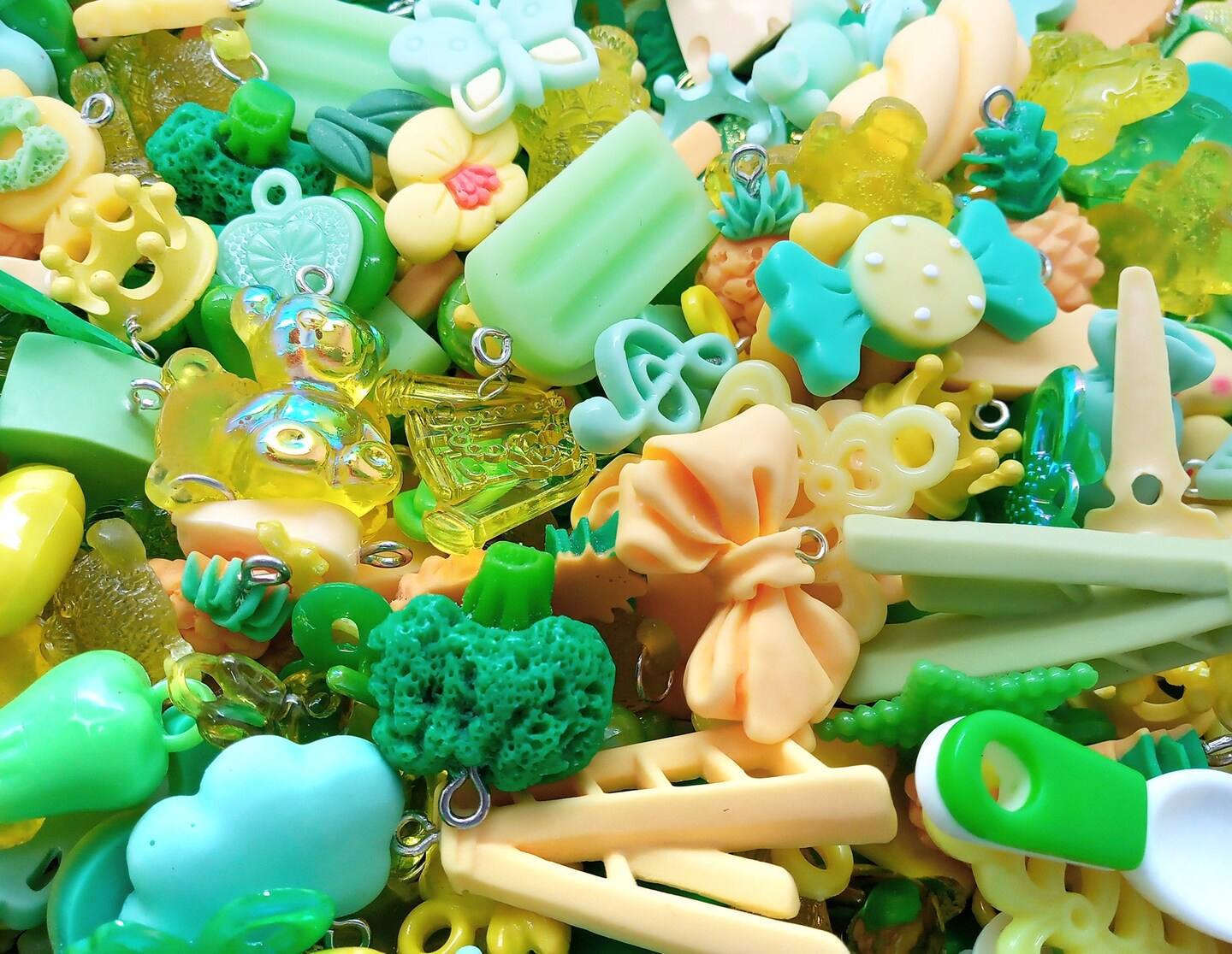 Cute Charm Mix in Green & Yellow, 30 pieces, Kawaii Resin and Acrylic Mix, Adorabilities