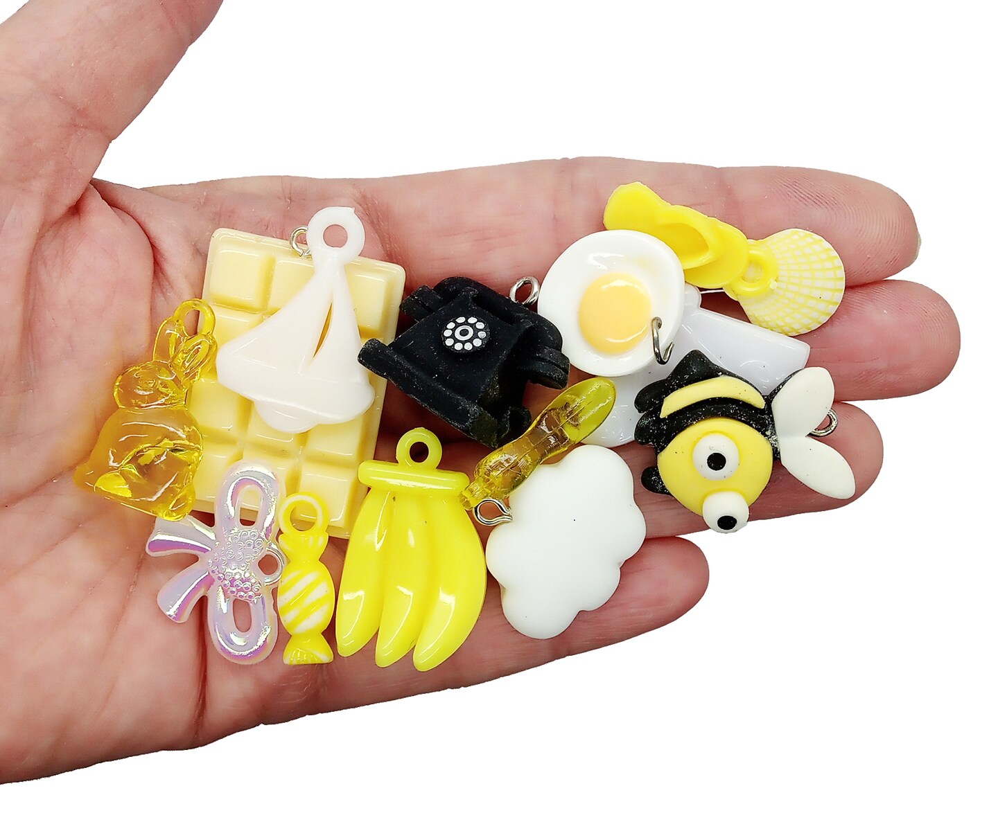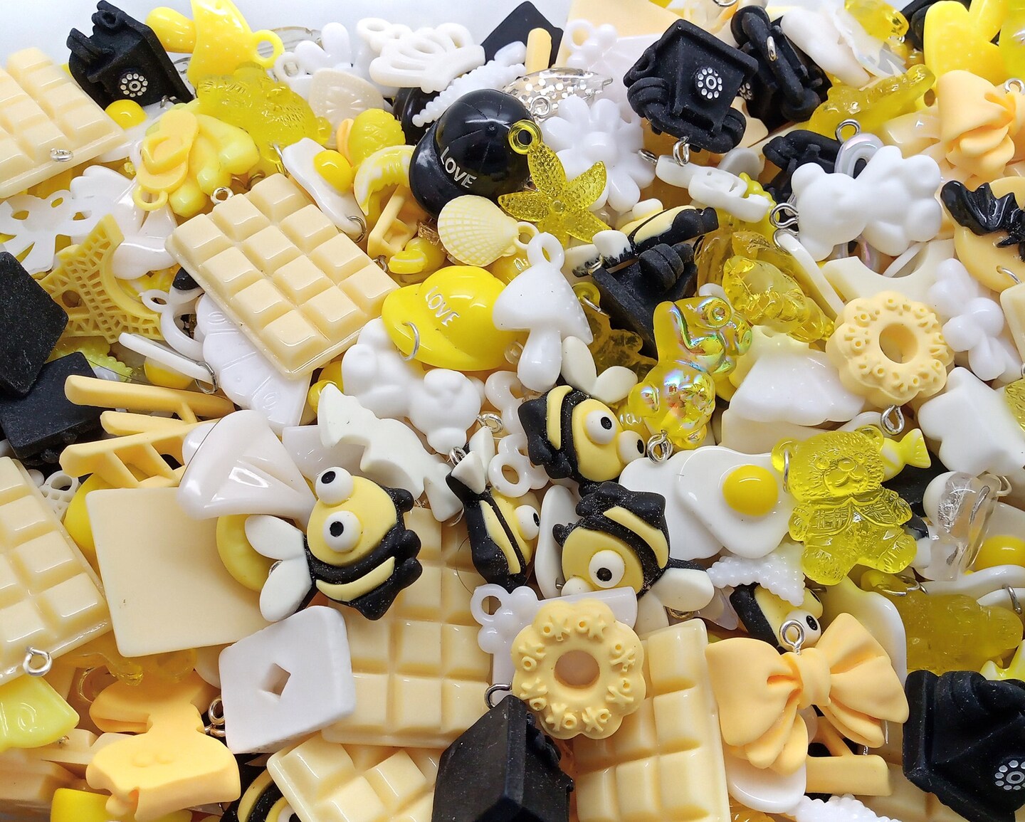 Cute Charm Mix in Yellow Black & White, 30 pieces, Kawaii Resin and Acrylic Mix, Adorabilities
