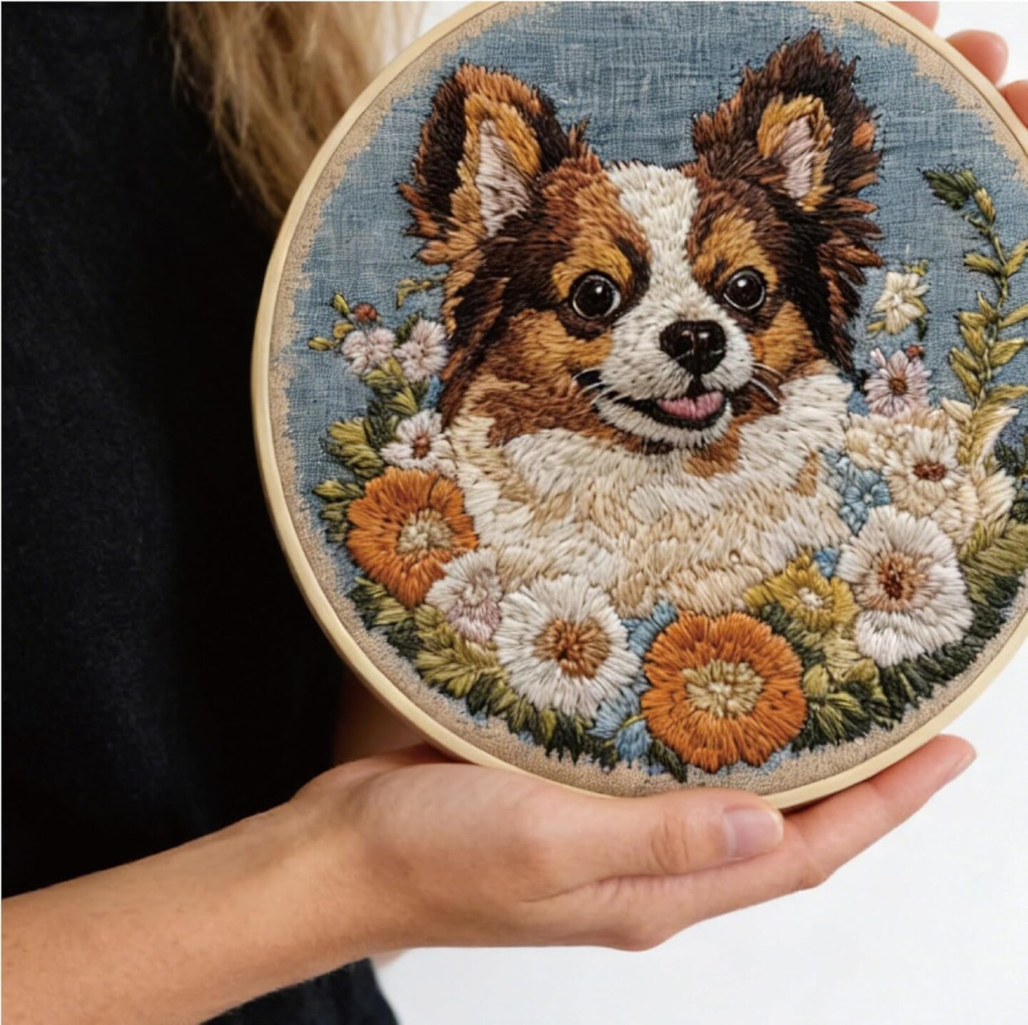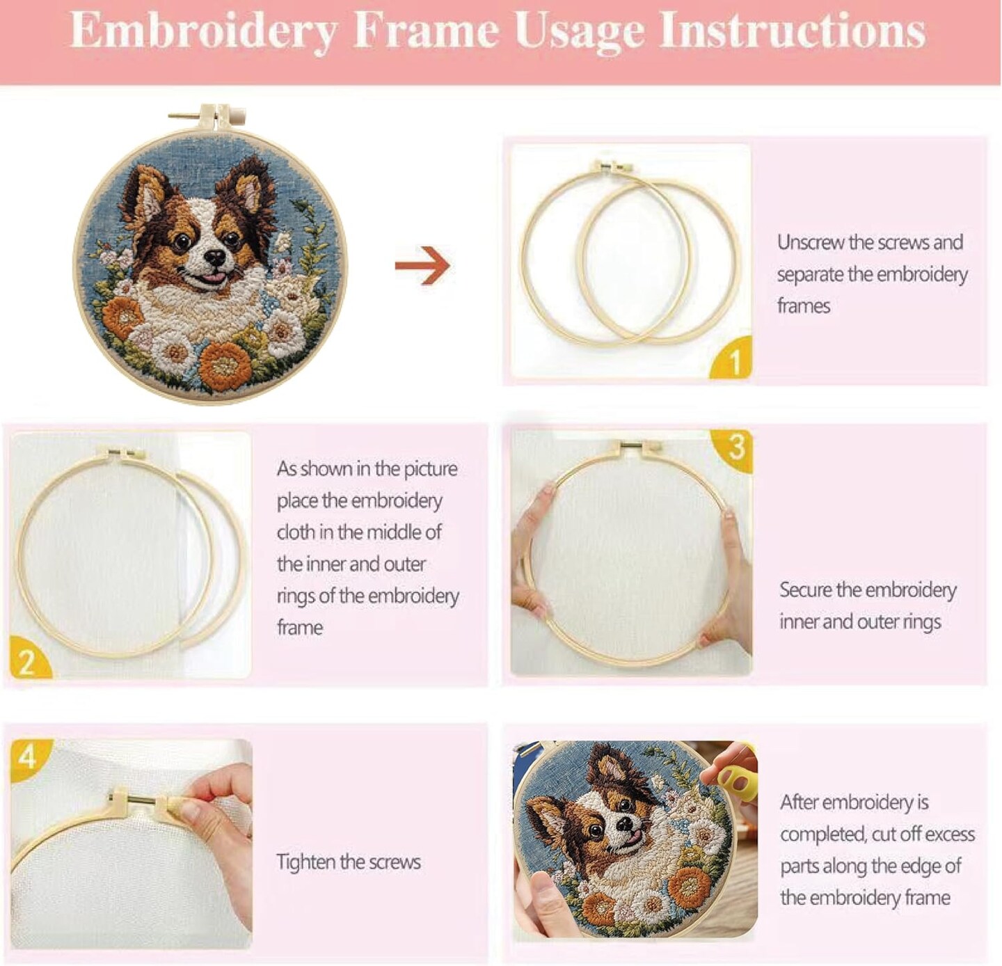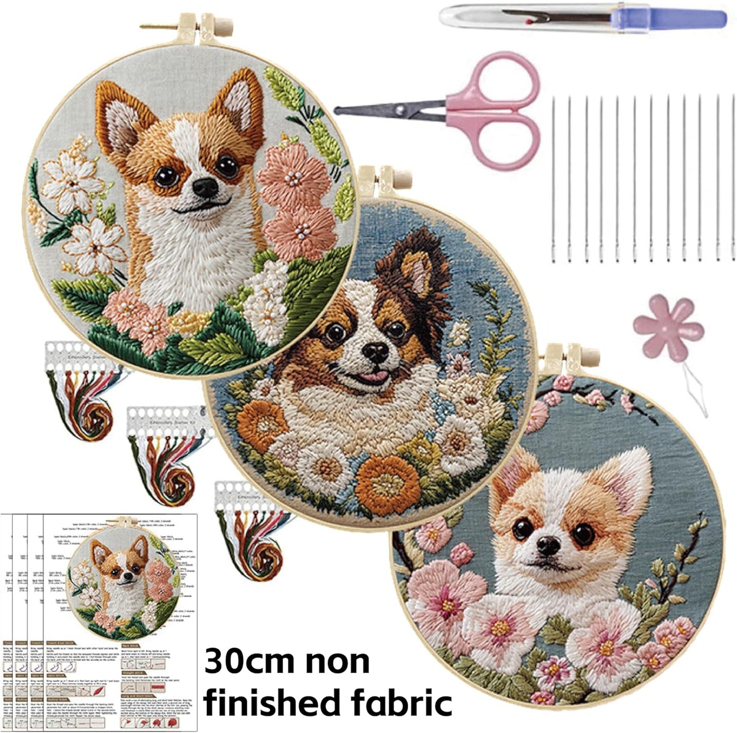 Cute Dog Embroidery Starter Kit – DIY Punch Needle Kit for Beginners with Pre-Printed Fabric, Hoop, Threads & Tools (Brown)