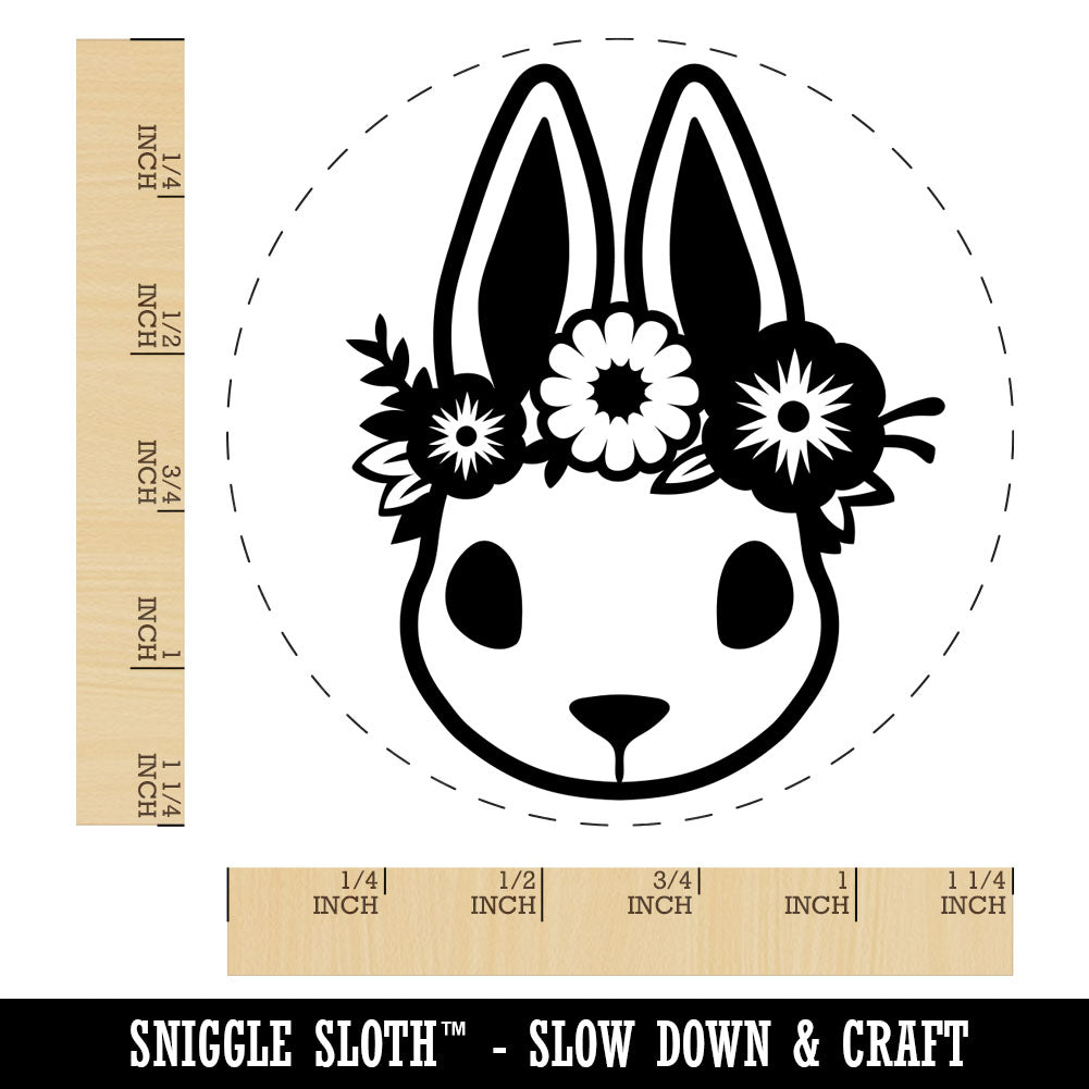 Cute Easter Bunny Rabbit Head with Flower Crown Rubber Stamp for Stamping Crafting Planners