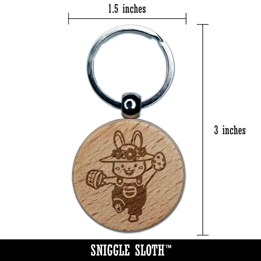 Cute Easter Bunny with Hat Egg and Overalls Engraved Wood Round Keychain Tag Charm