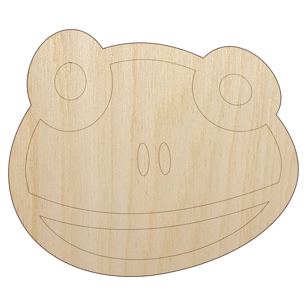 Cute Frog Face Unfinished Wood Shape Piece Cutout for DIY Craft Projects