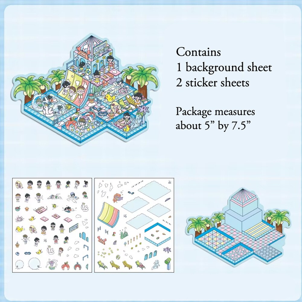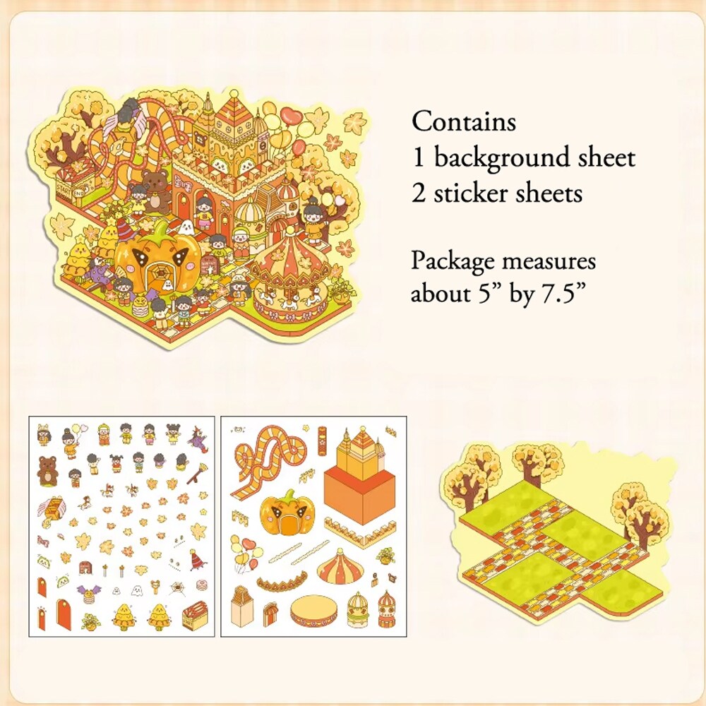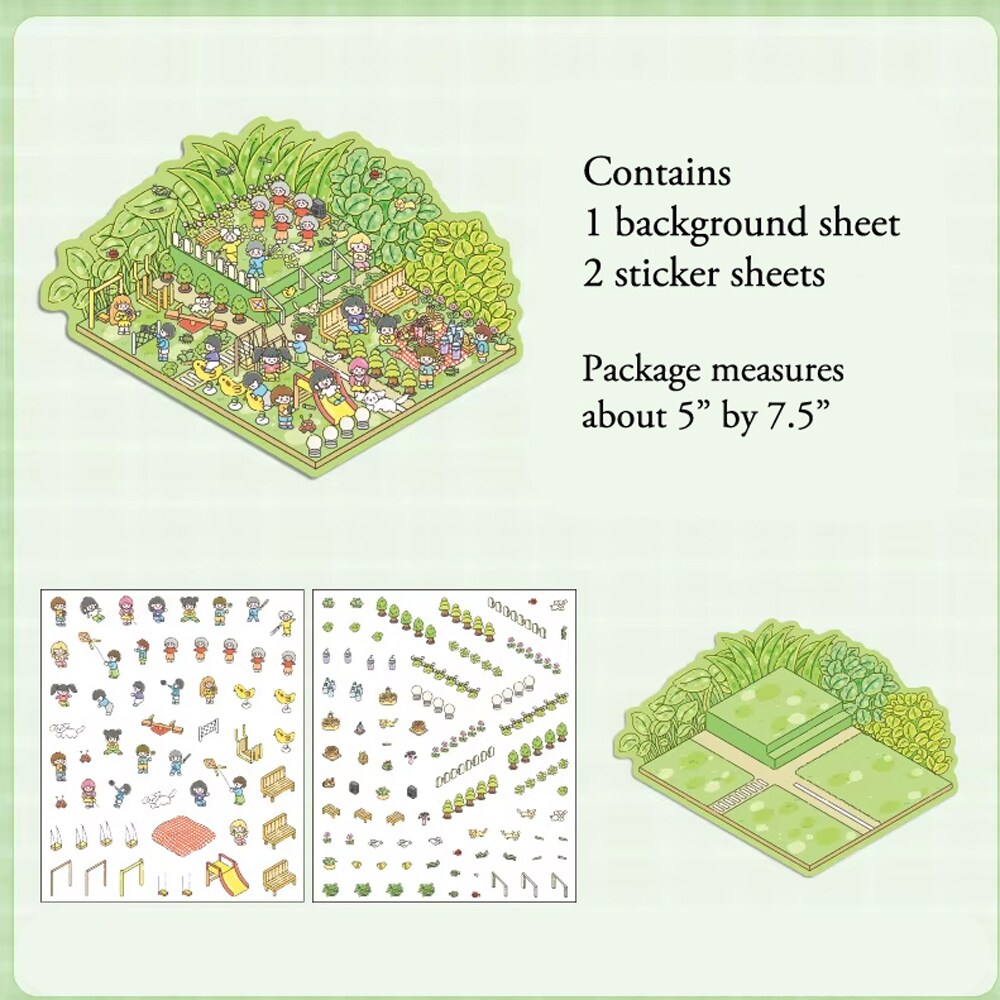 Cute Isometric Sticker Activity, 4 Packs, DIY Landscape Stickers, Adorabilities