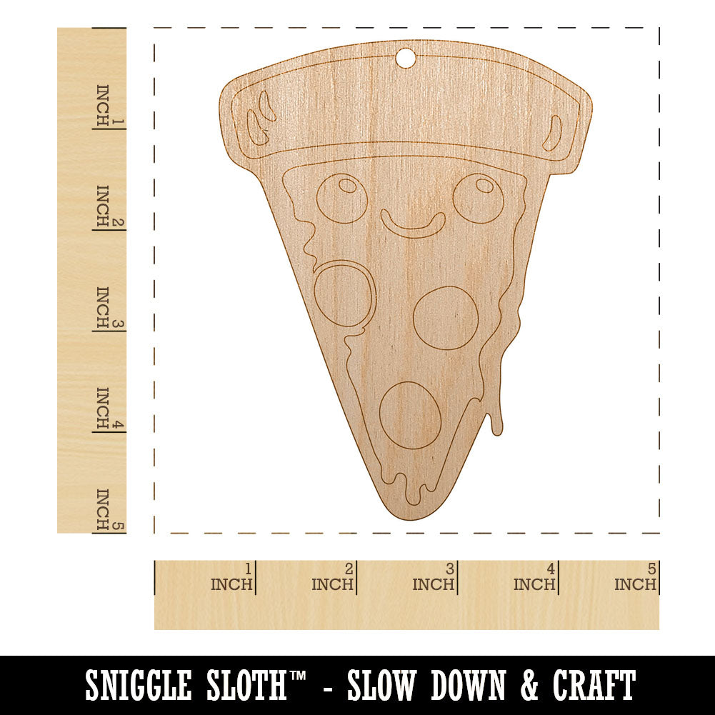 Cute Kawaii Pepperoni Pizza Unfinished Craft Wood Holiday Christmas Tree DIY Pre-Drilled Ornament