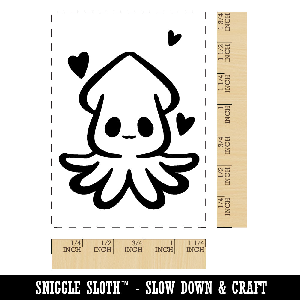 Cute Kawaii Squid with Hearts Sea Life Tentacles Rectangle Rubber Stamp for Stamping Crafting