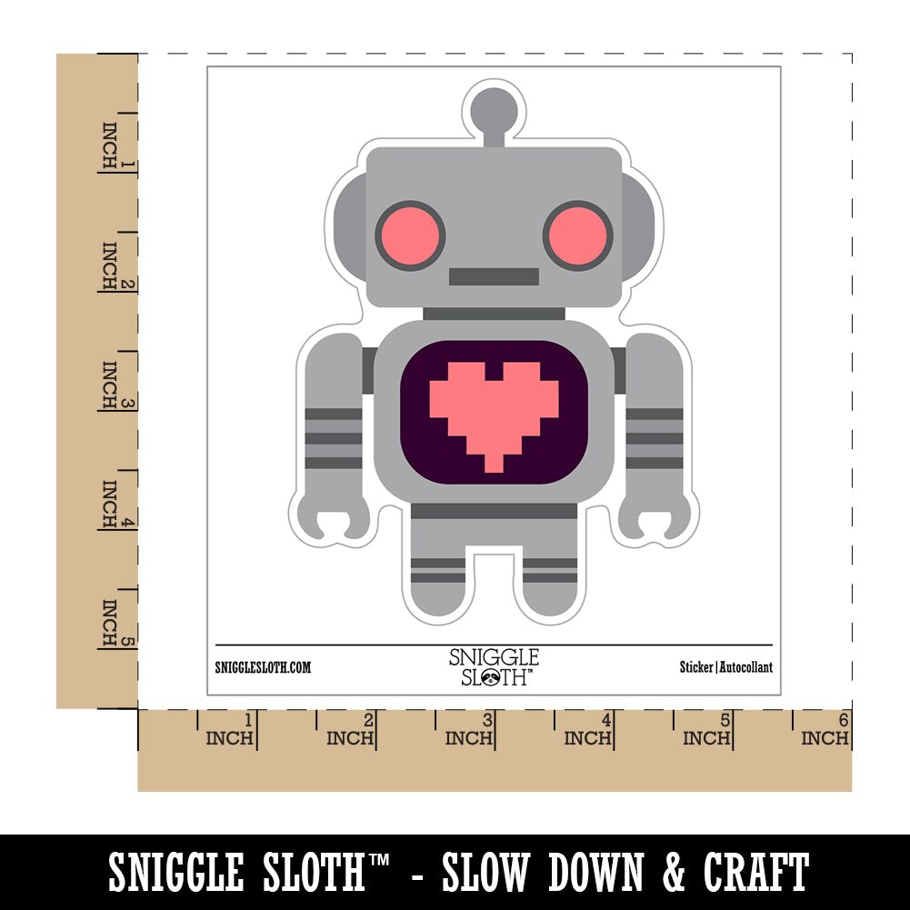 Cute Little Robot with a Heart Waterproof Vinyl Phone Tablet Laptop Water Bottle Sticker Set - 5 Pack