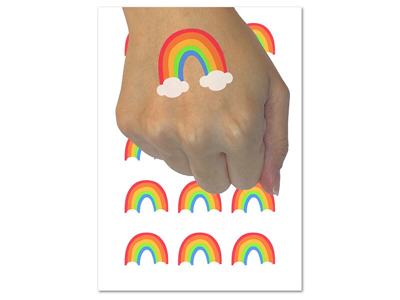 Cute Rainbow Clouds Peace Love Temporary Tattoo Water Resistant Fake Body Art Set Collection (1 Sheet)