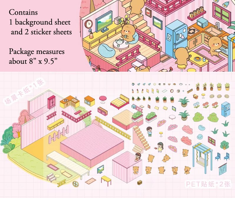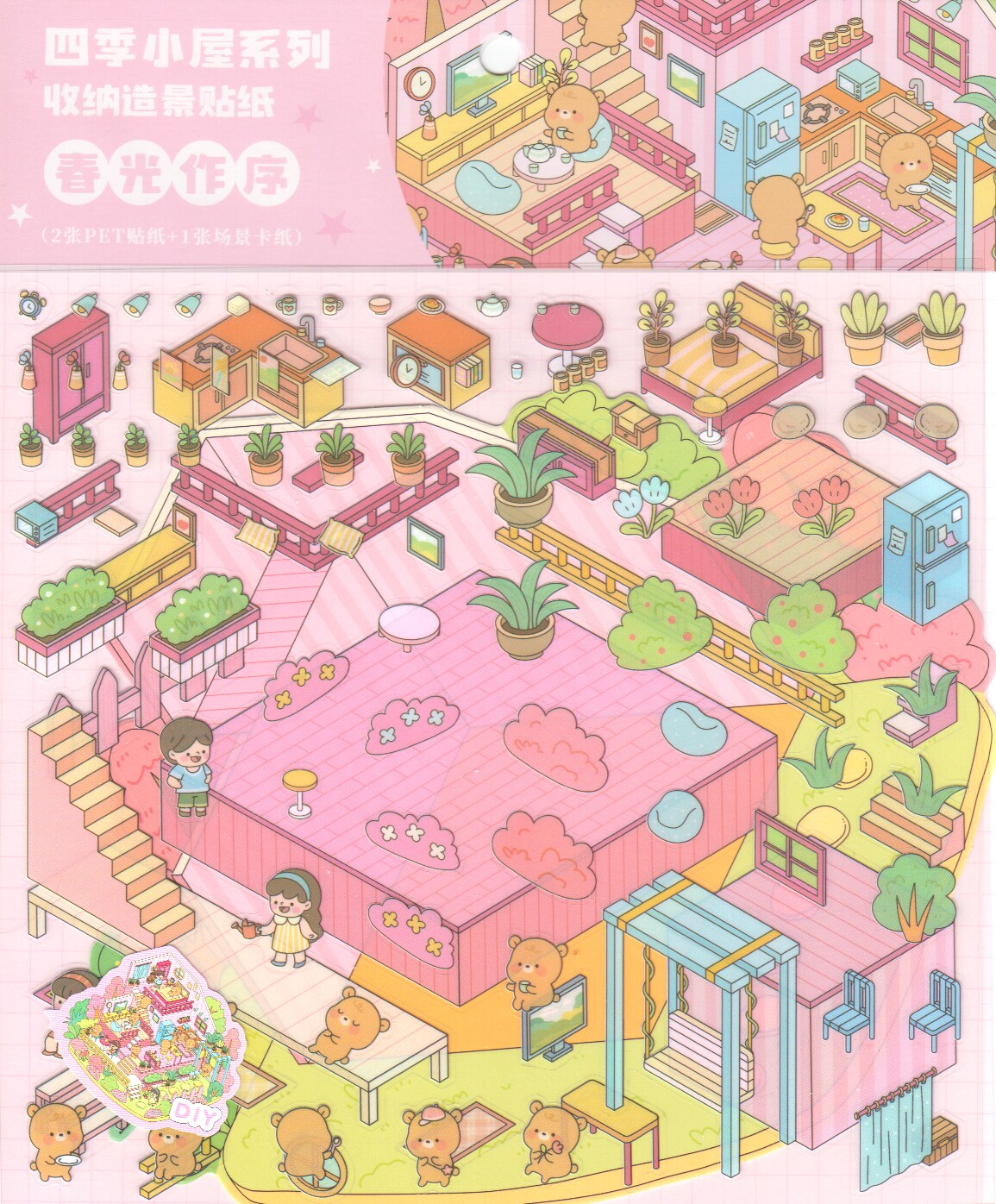 Cute Spring House Sticker Scene, Larger Size, Isometric Sticker Activity, Adorabilities