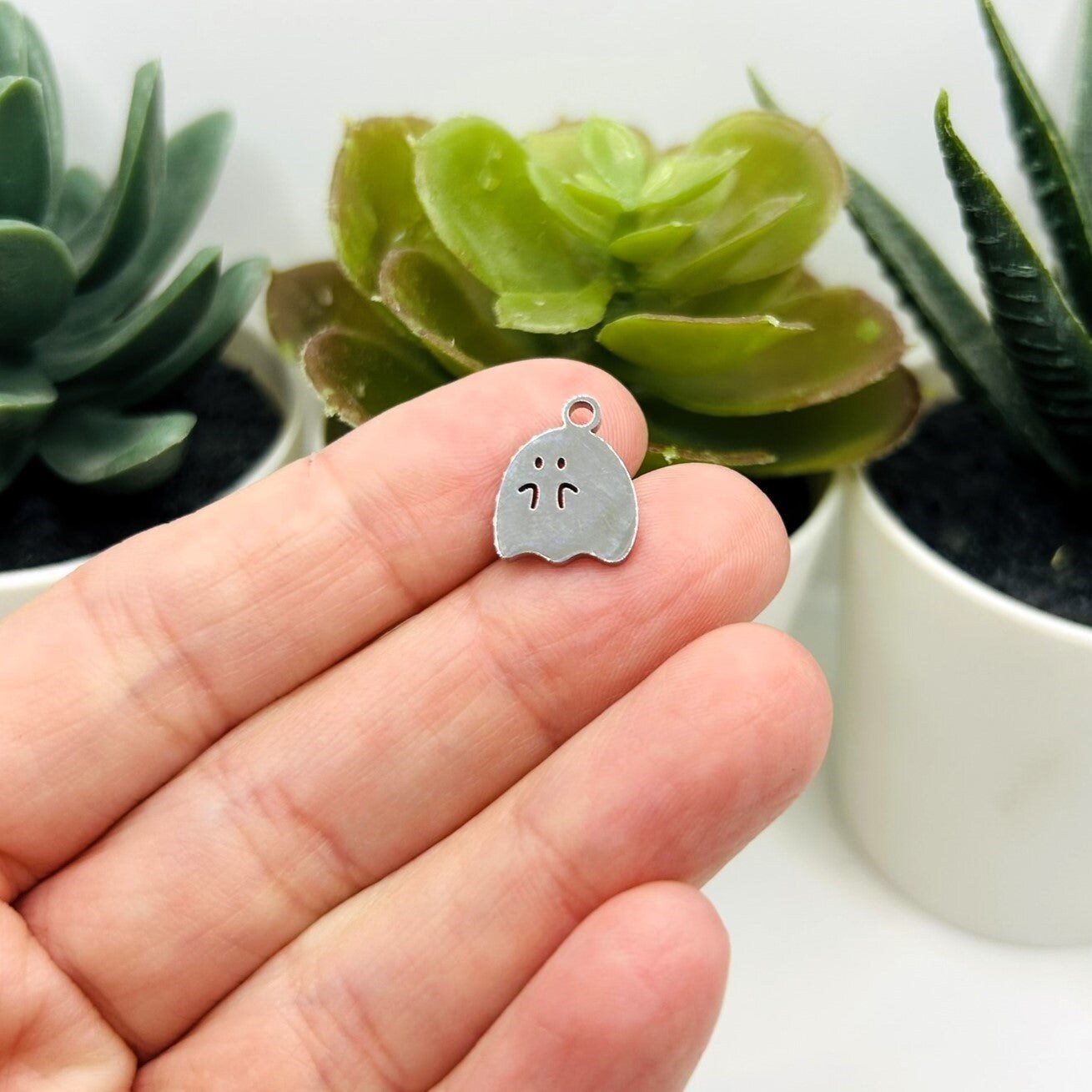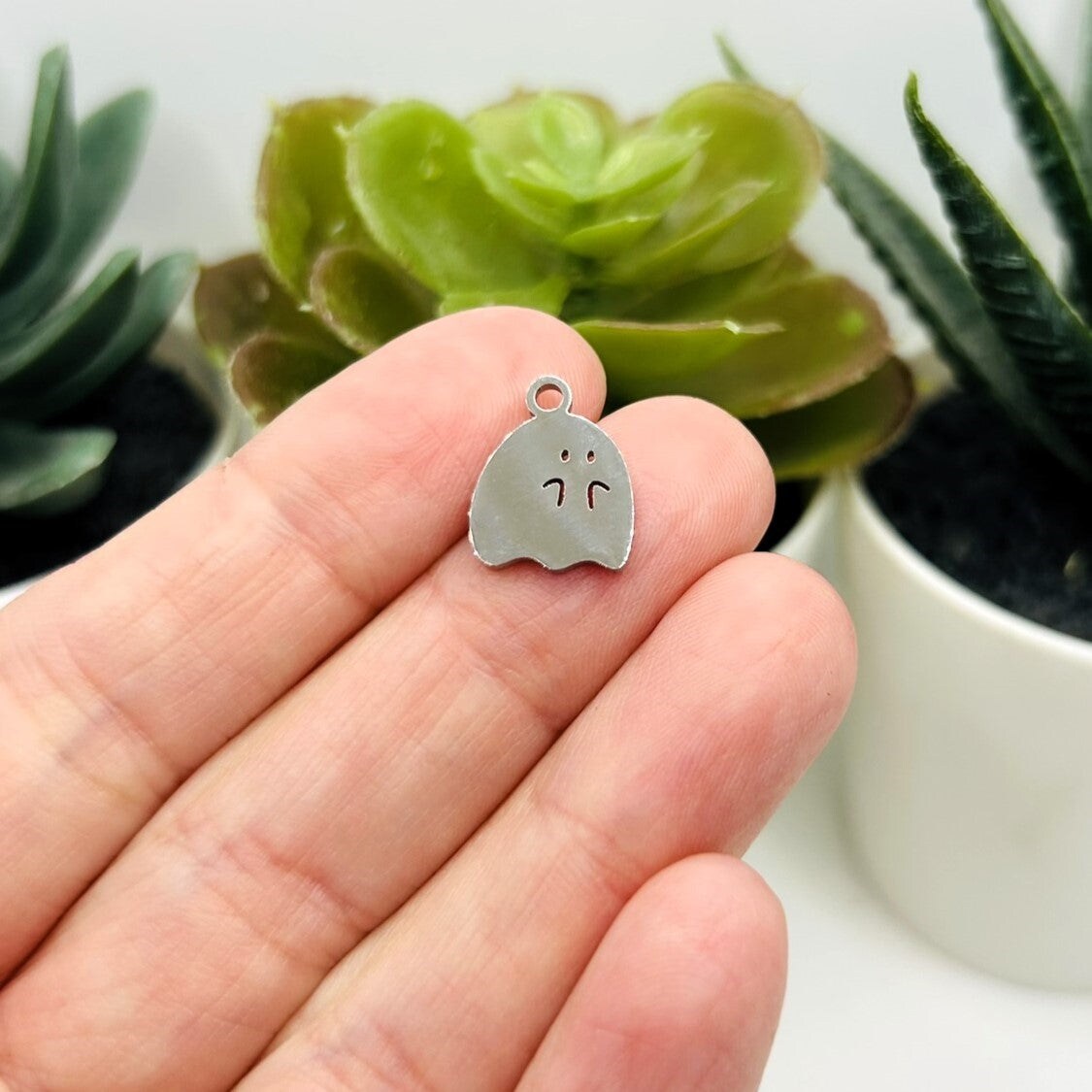 Cute Stainless Steel Ghost Charms, 14x11mm