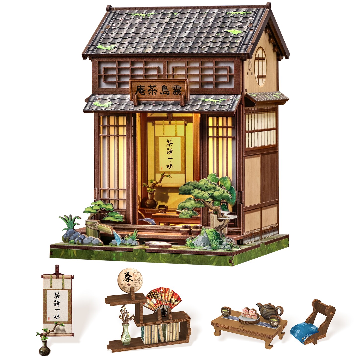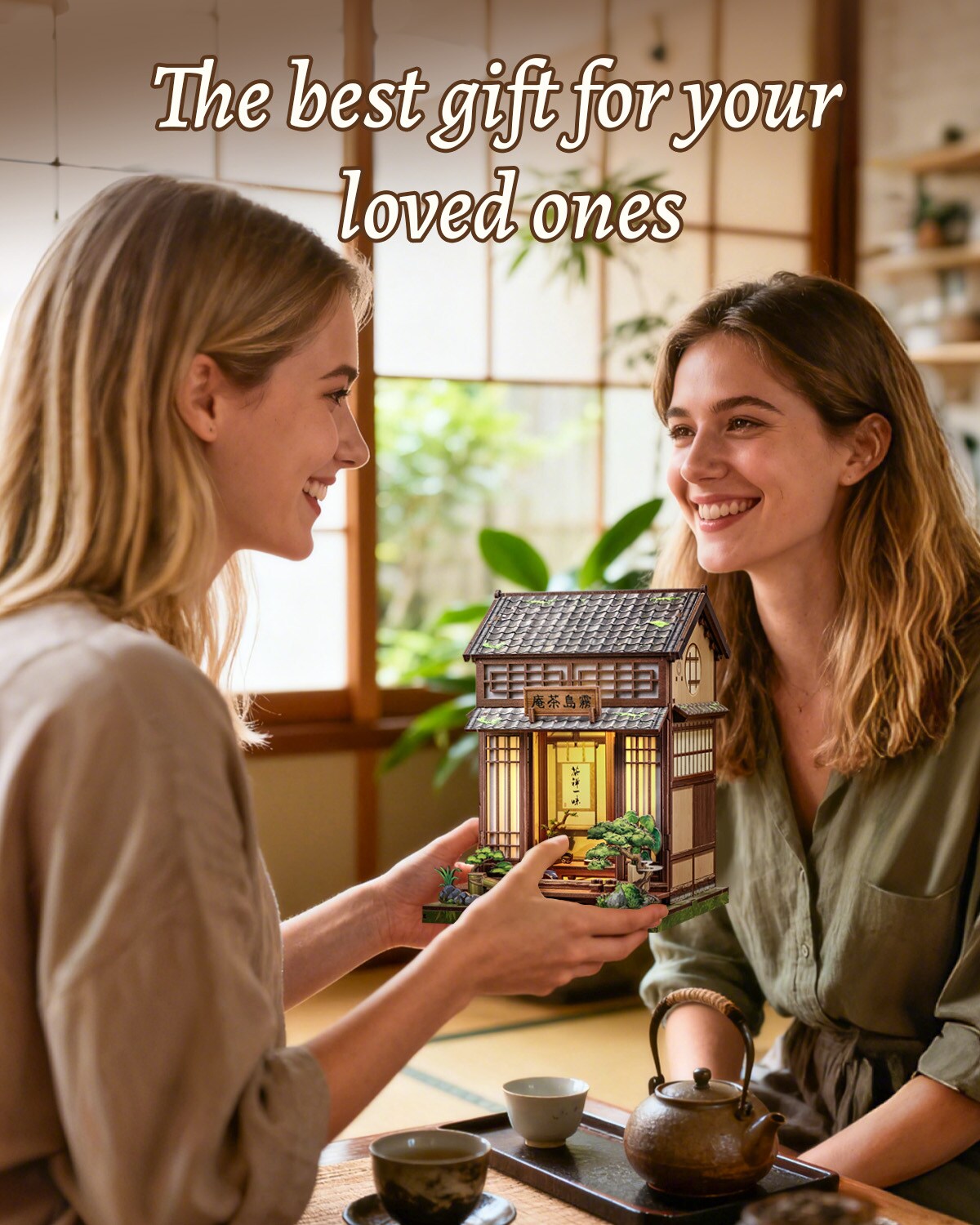 CUTEBEE Book Nook Kit Japanese Tea House DIY Miniature House Shelf Insert Decor Diorama Kit
