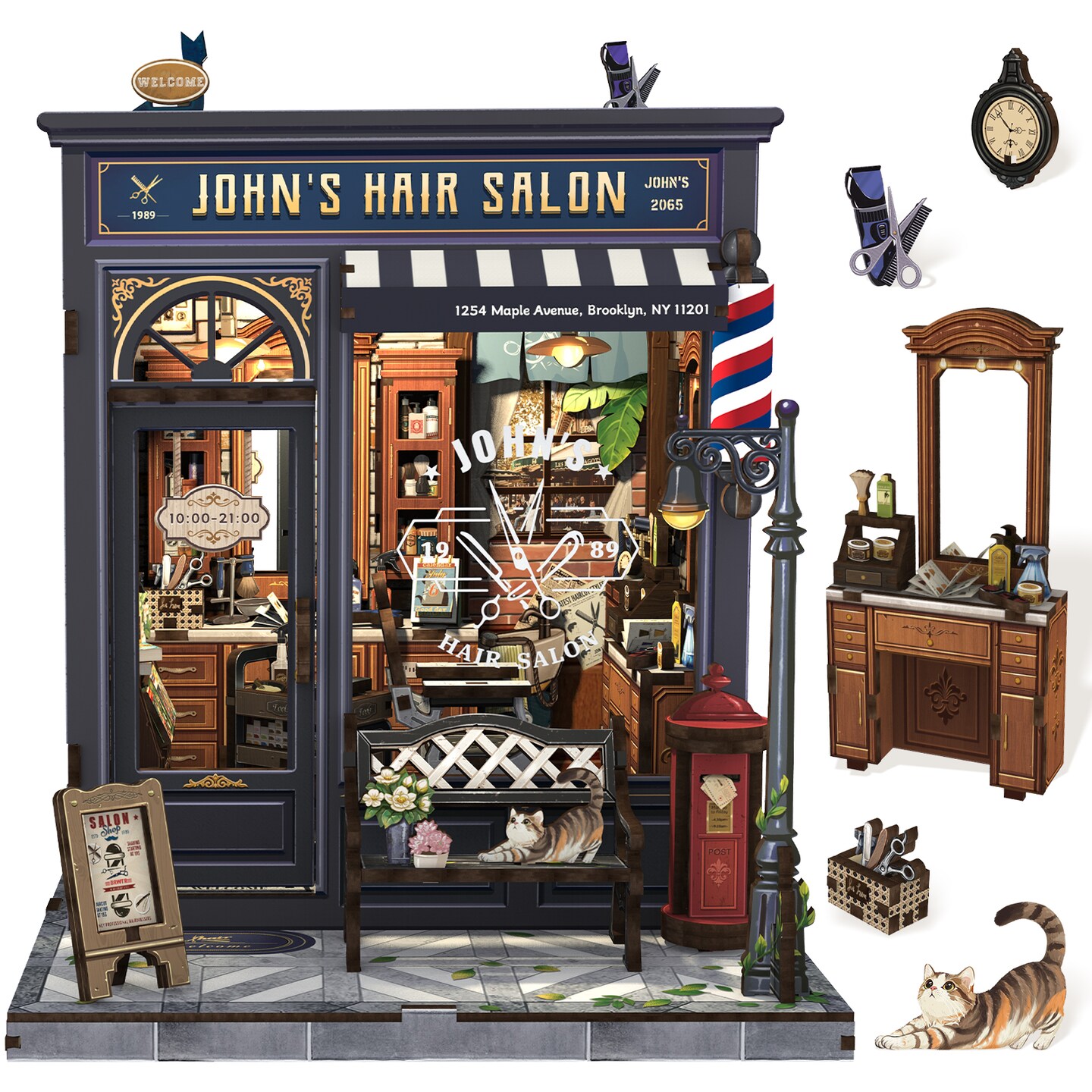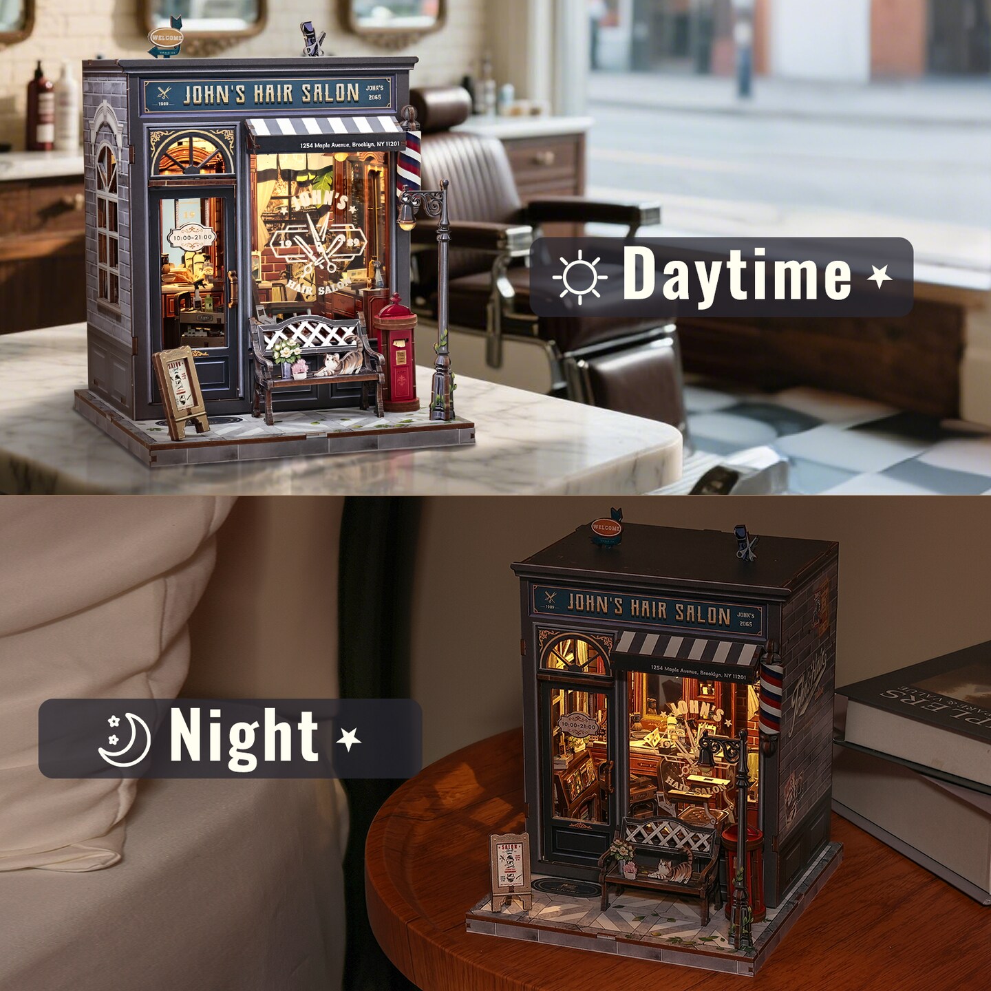 CUTEBEE Book Nook Kit John’s Hair Salon Barbershop DIY Miniature House Shelf Insert Decor Diorama Kit