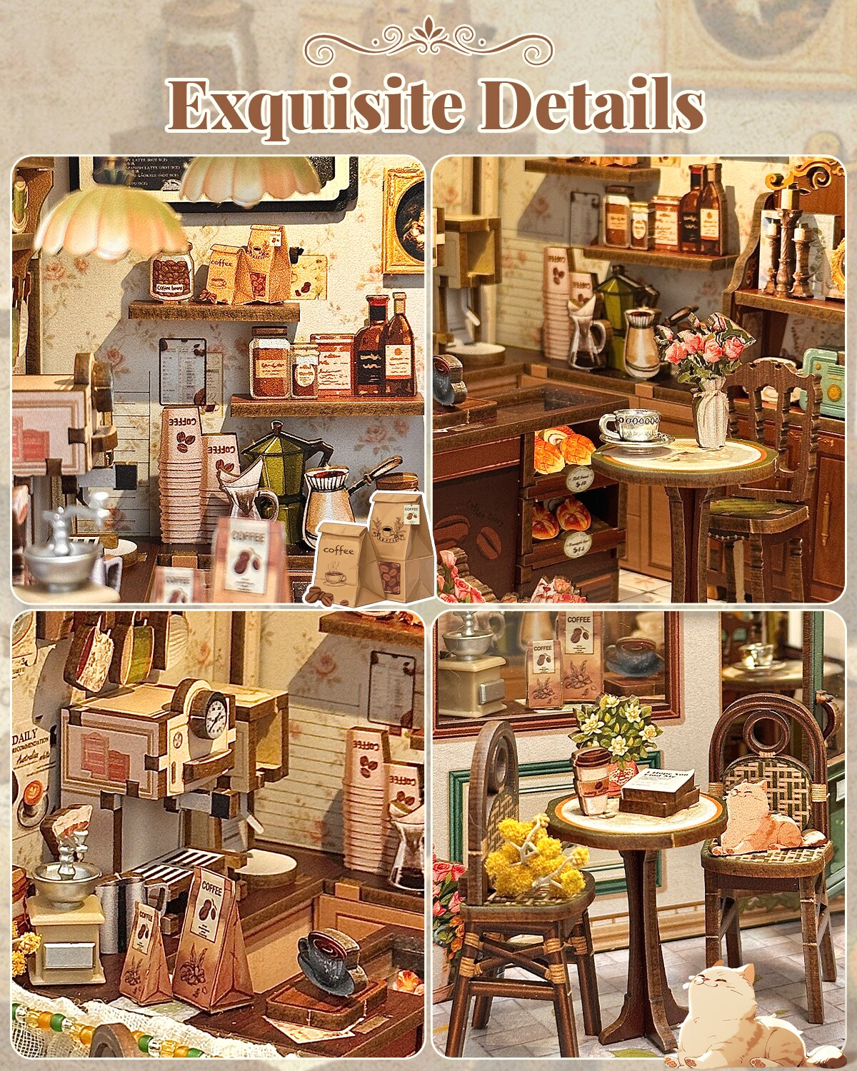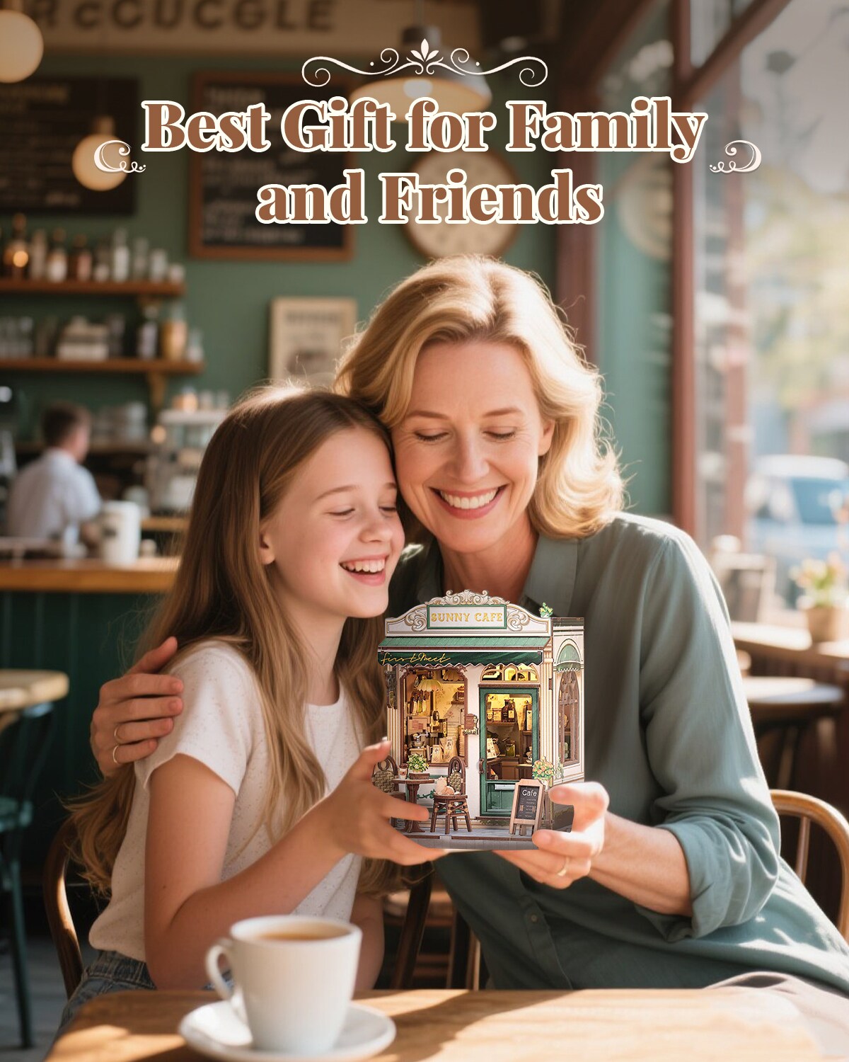 CUTEBEE Book Nook Kit Sunny Cafe DIY Miniature House Shelf Insert Decor Diorama Kit