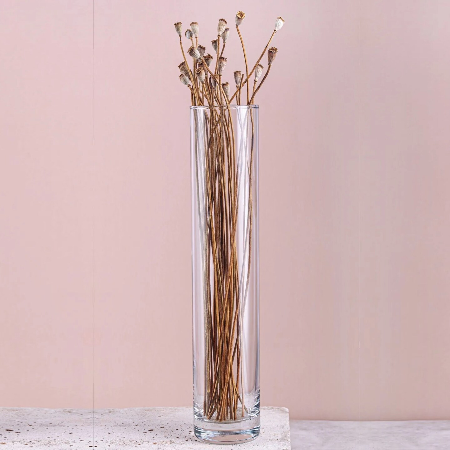 Cylindrical Transparent Glass Vase Perfect for Flowers and Decorative Fillers