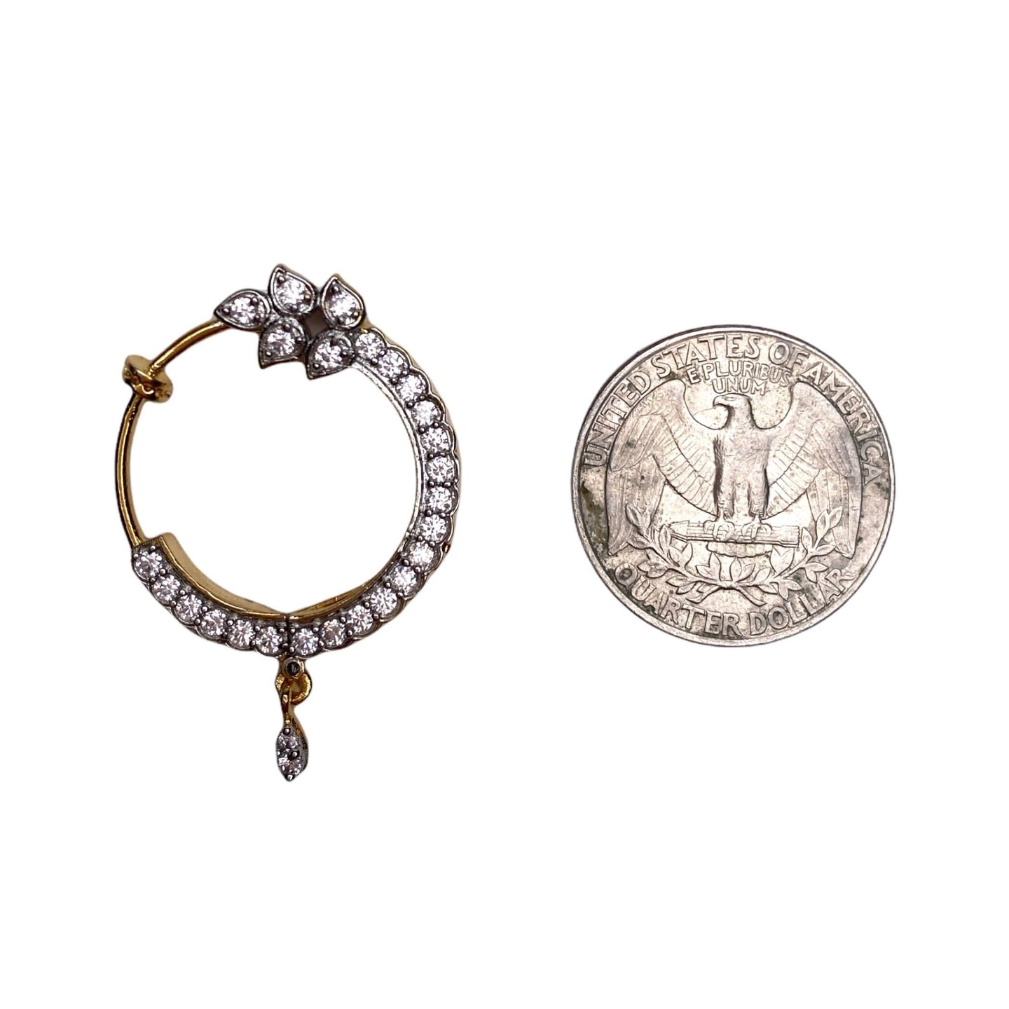 Cz Nose Ring with Rhodium Plating - Leaf Design Nosepin Jewelry for Women Teardrop Indian Nose Rings Hoops Non-Piercing Nose Pin Septum Ring Pressable Silver Bridesmaid Nath Gift for Her