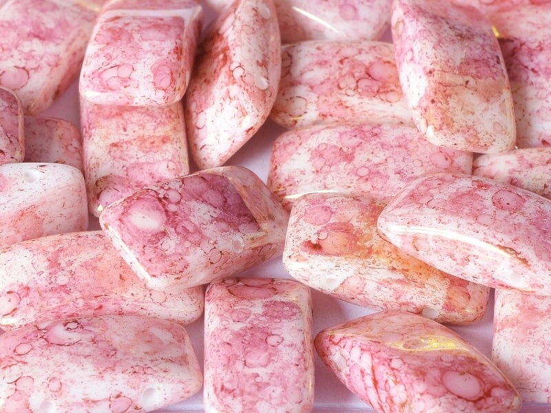 Czech Glass 9 x 17mm Carrier Bead Two Hole - Chalk White Terracotta Red - 15 Beads