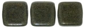 Czechmate 6mm Square Glass Czech Two Hole Tile Bead, Dk Green Metallic Suede
