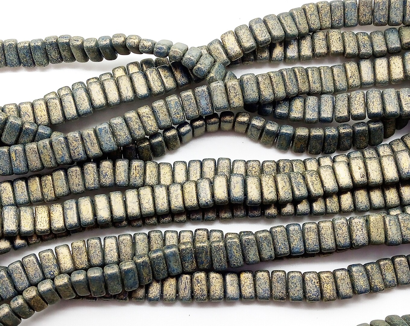 Czechmates Brick Beads, 50-piece Strand, Blue/Gold Coating, Pacificia Poppy Seed, Adorabilities