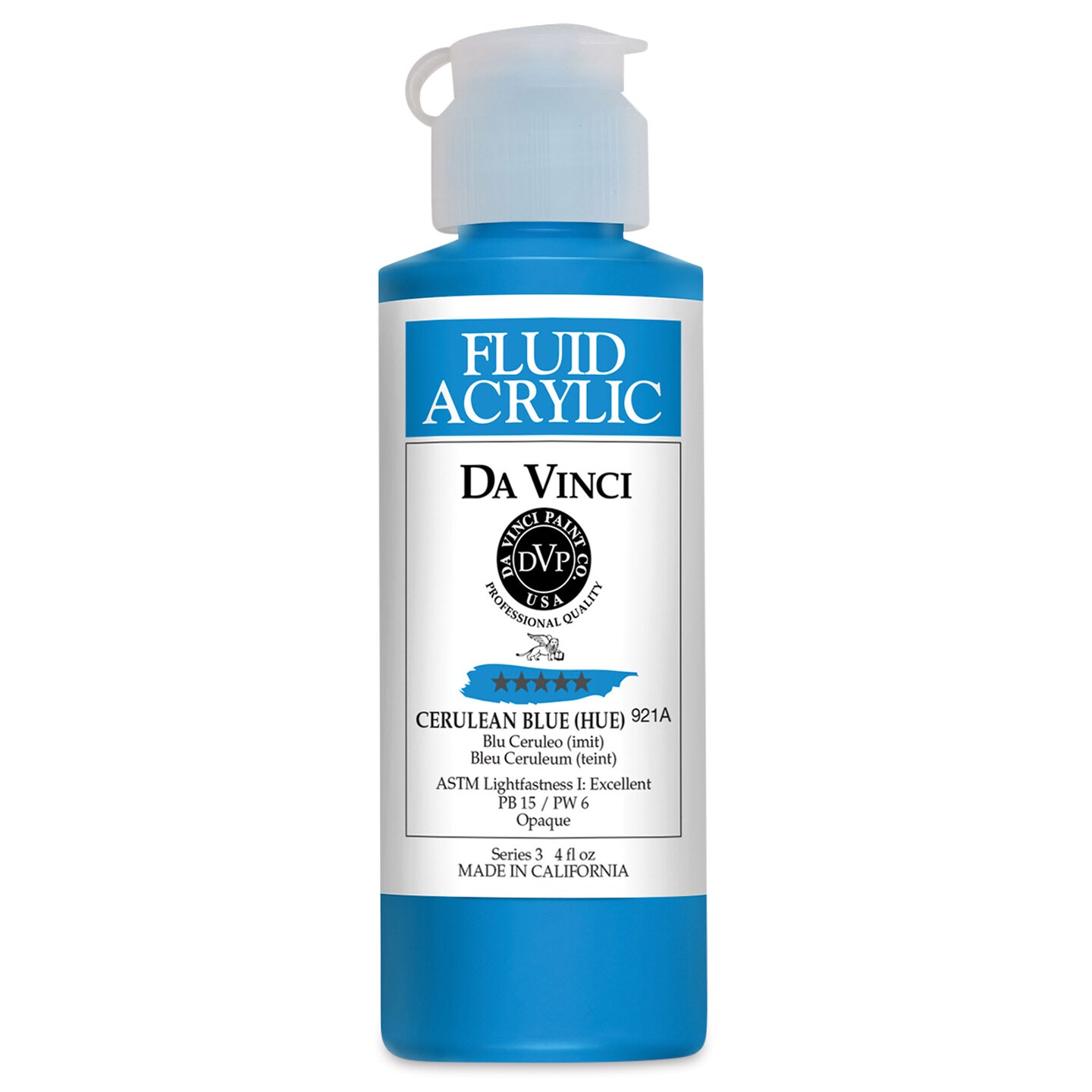 Da Vinci Fluid Acrylics - Cerulean Blue Hue, 4 oz bottle