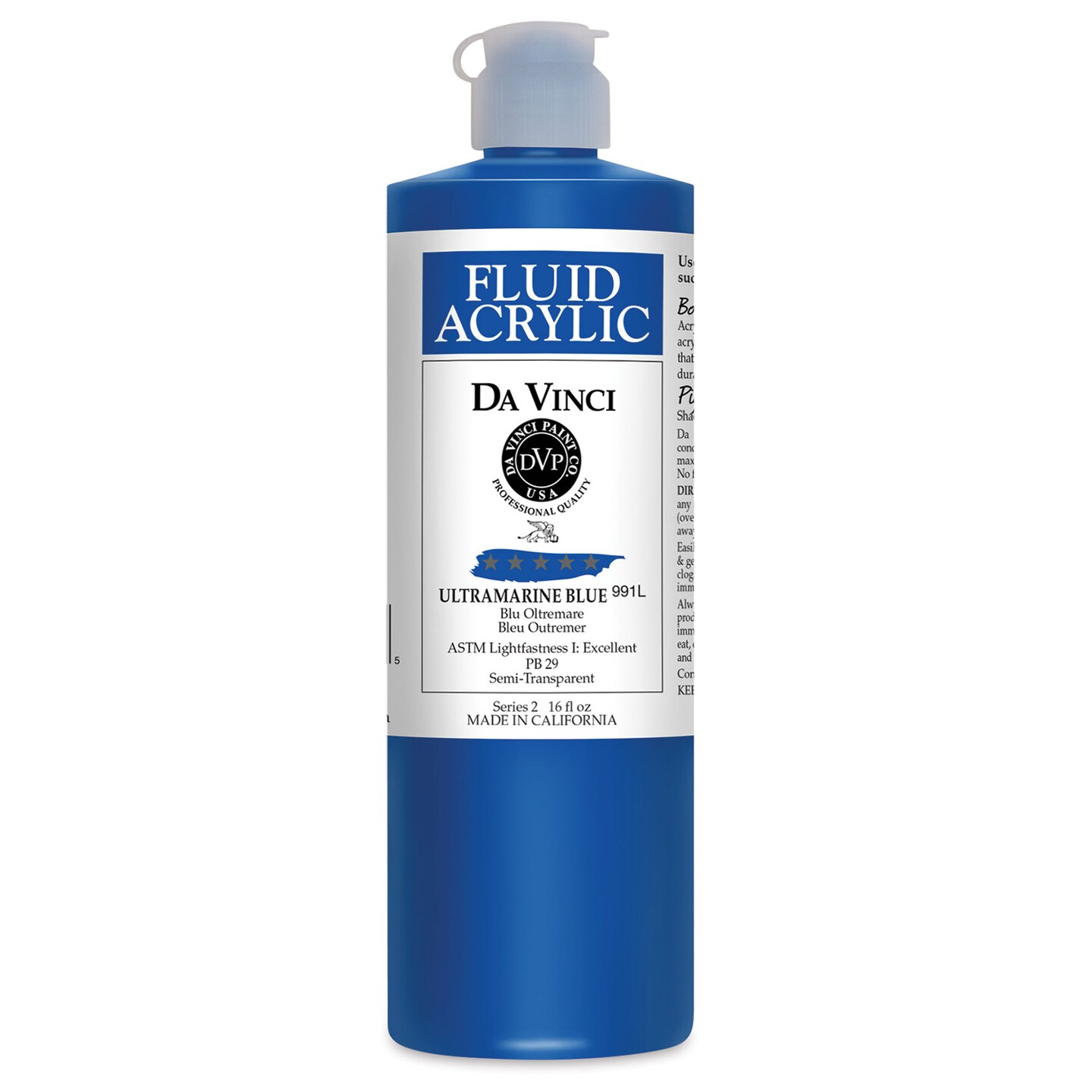 Da Vinci Fluid Acrylics - Ultramarine Blue, 16 oz bottle