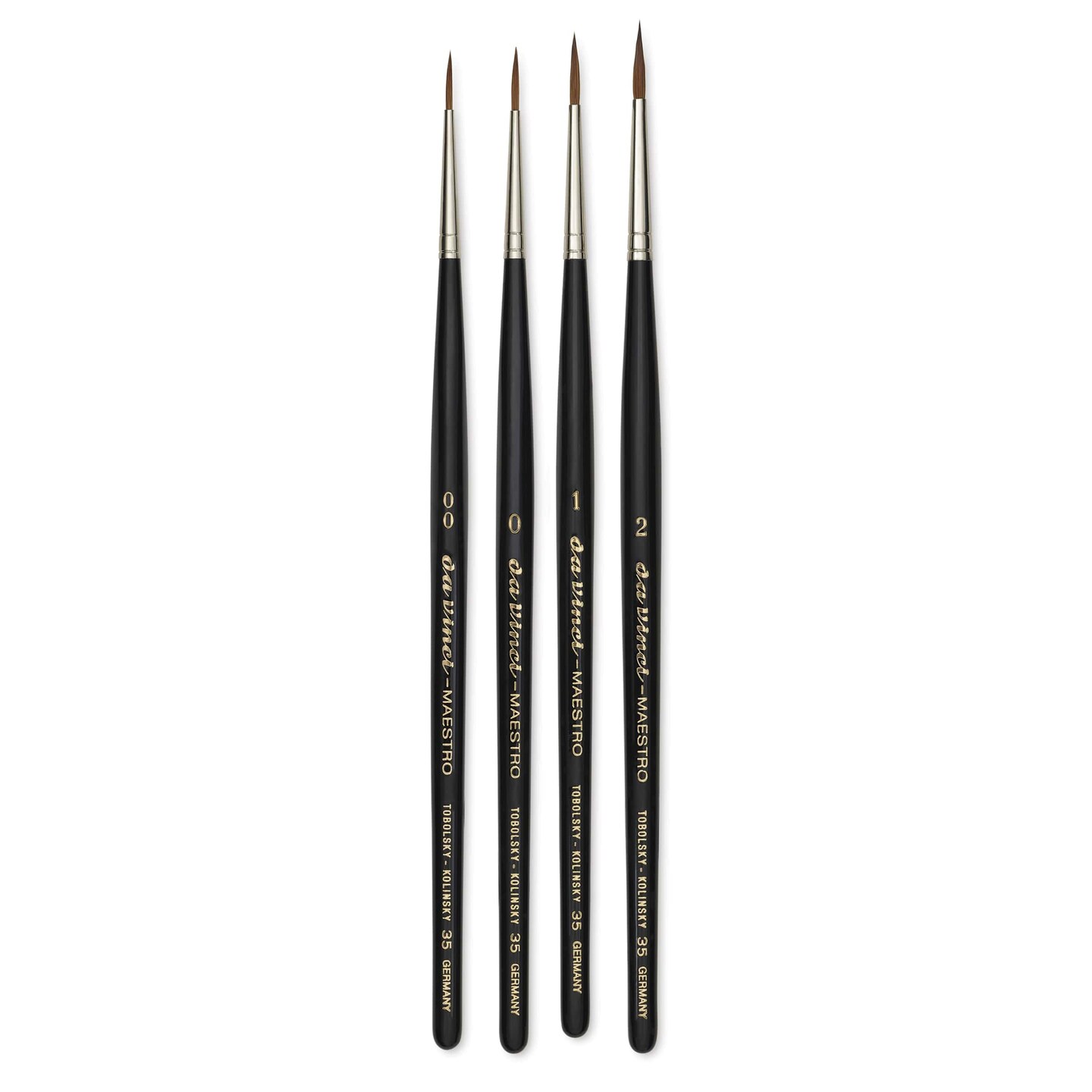 Da Vinci Maestro Kolinsky Brushes - Set of 4, Series 35 Long Tapered Round, Short Handle