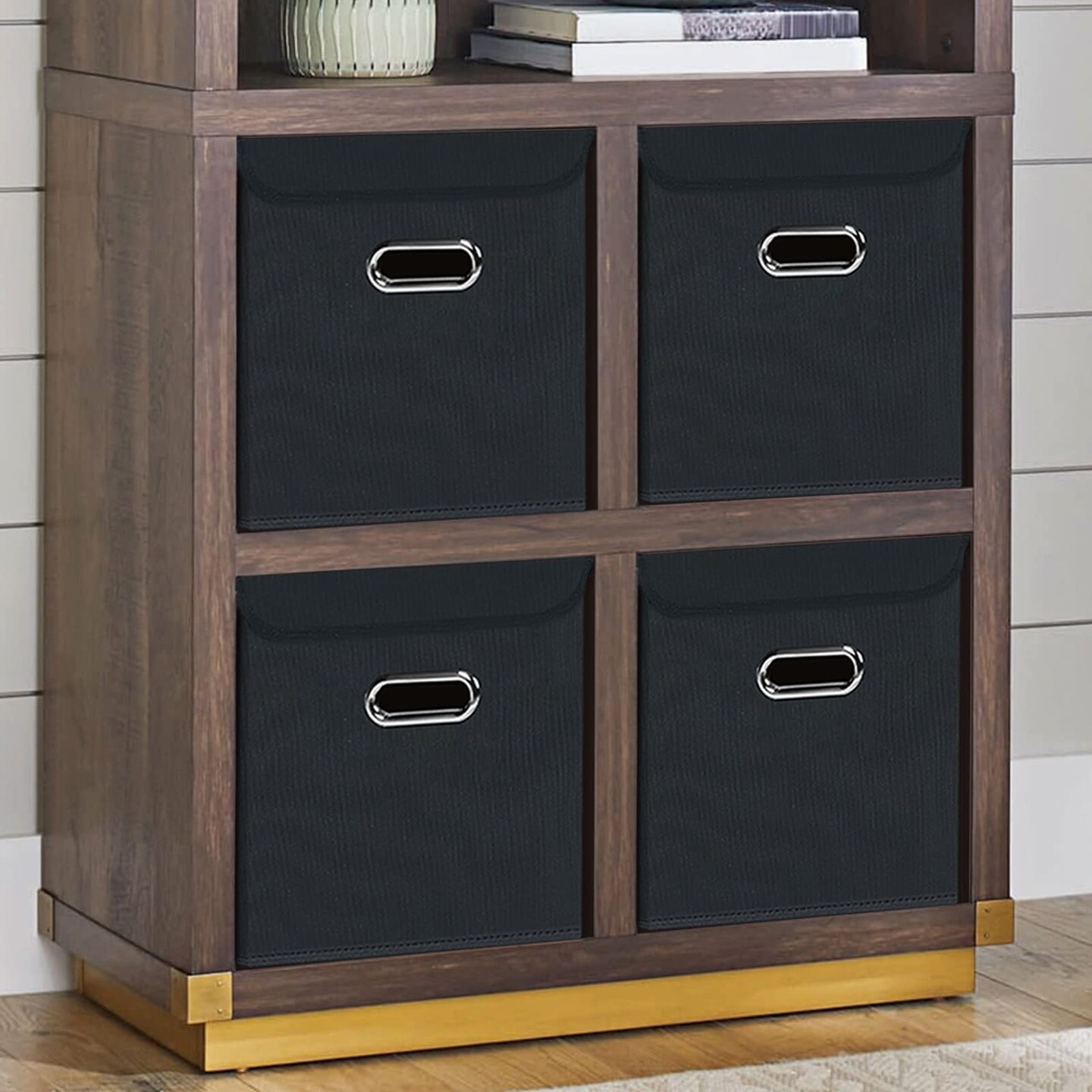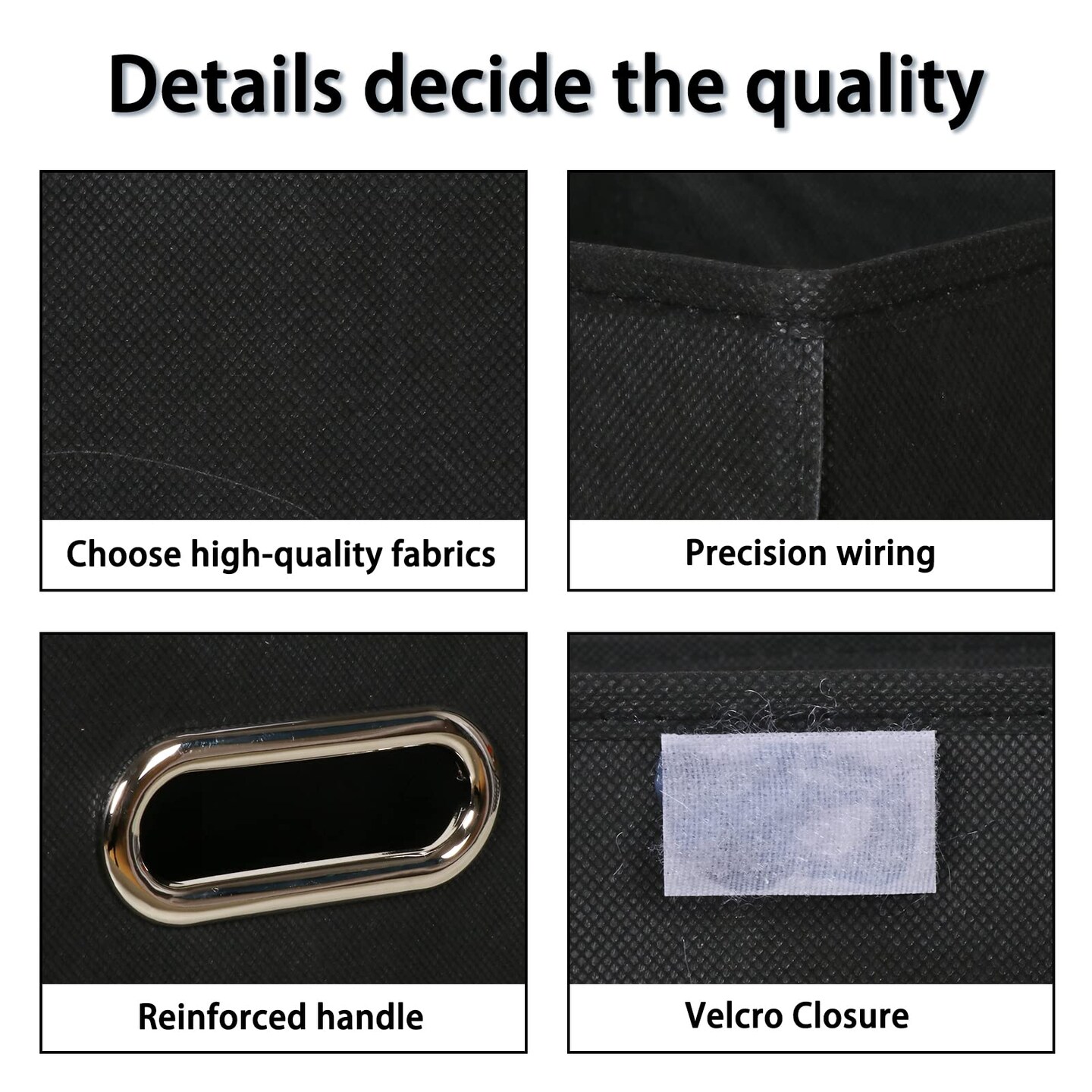 DABEACT Fabric Storage Cube Bins with Lids Closet Organizers collapsible storage bins basket with Handles for Home,Storage Boxes for Organizing,3 Pack,(black)