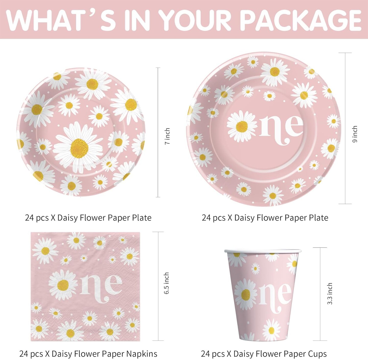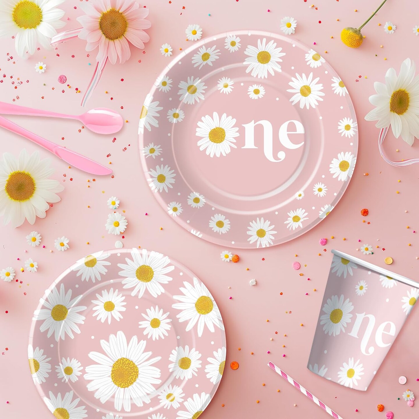 Daisy 1st Birthday Decorations Party Tableware Set, Groovy Retro Floral Daisy First Birthday Party Supplies, Paper Plate, Napkin, Cup, Tablecloth, Disposable Cutlery | Serves 24