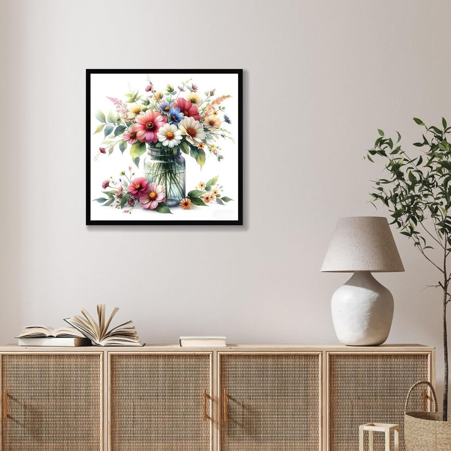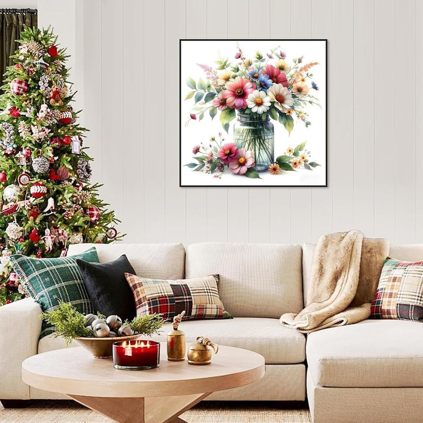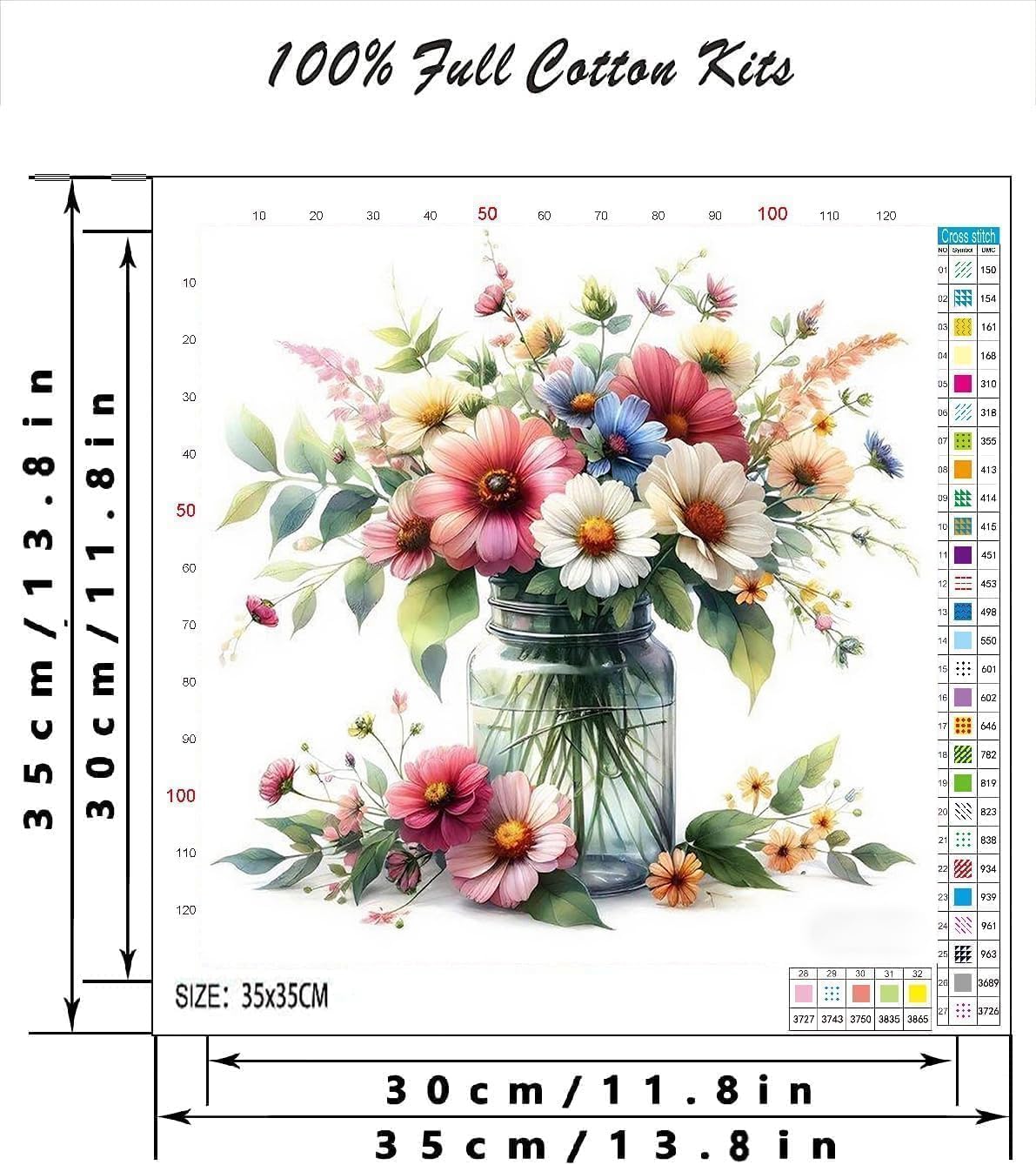 Daisy Flowers Stamped Cross Stitch Kit – Beginner-Friendly 11CT Needlepoint Embroidery Kit with Threads & Needles, DIY Counted Cross Stitch for Adults, Home Décor, 13.8×13.8 Inch