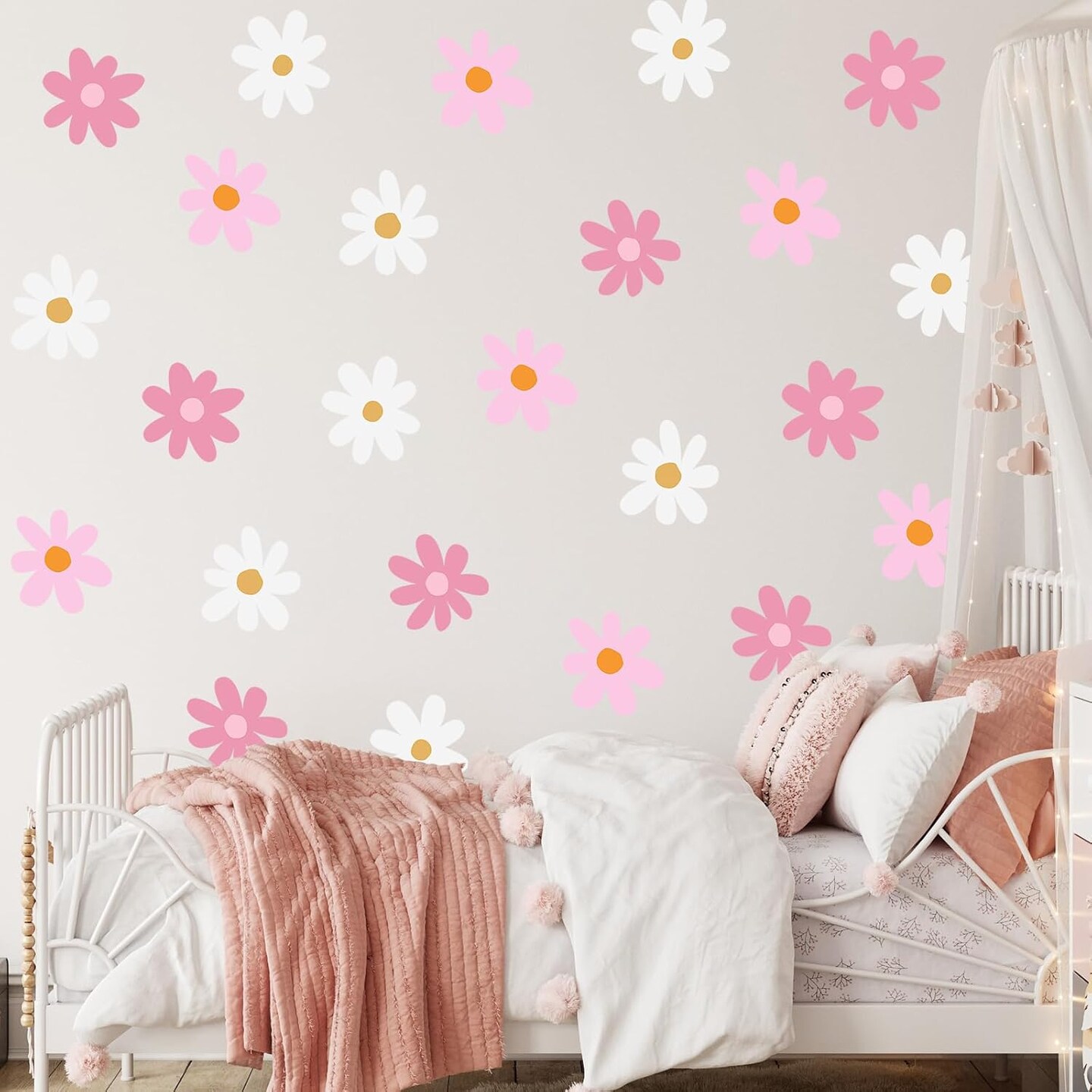 Daisy Wall Decal Flower Vinyl Wall Floral Decals Peel and Stick Daisy Stickers (Pink, White)