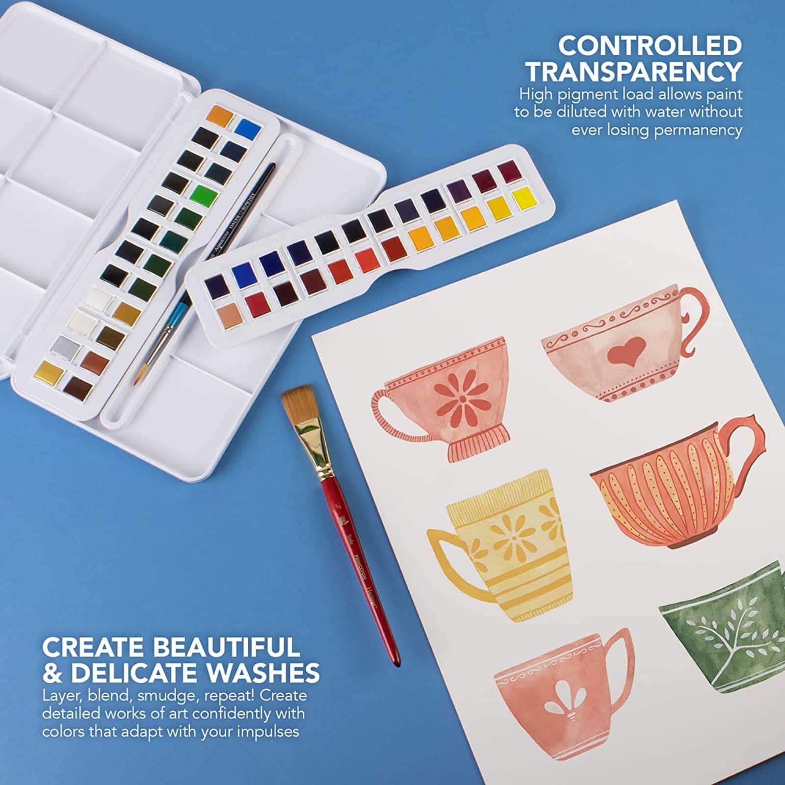 Daler-Rowney® Aquafine 48 Color Half-Pan Watercolor Travel Set with Brush