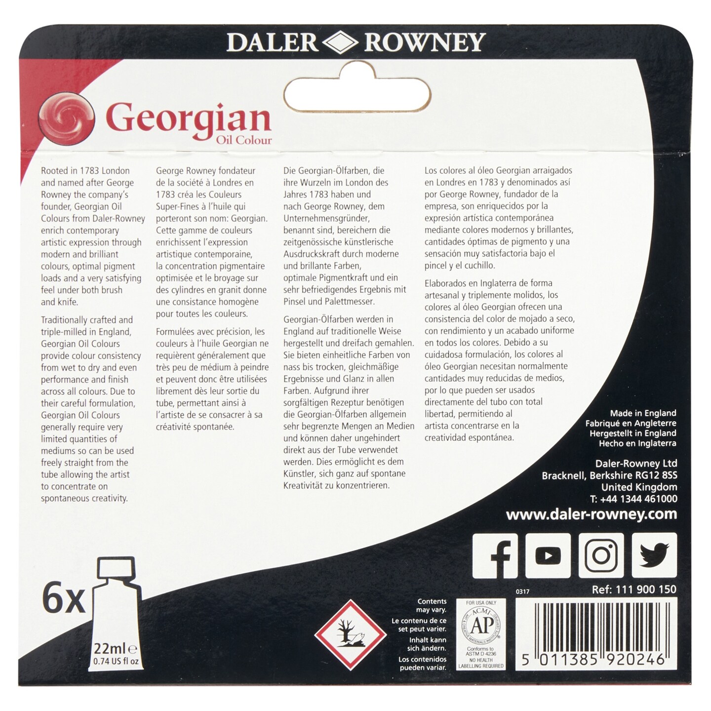 Daler-Rowney Georgian Oil Paint Starter Set 6/Pkg-Assorted Colors