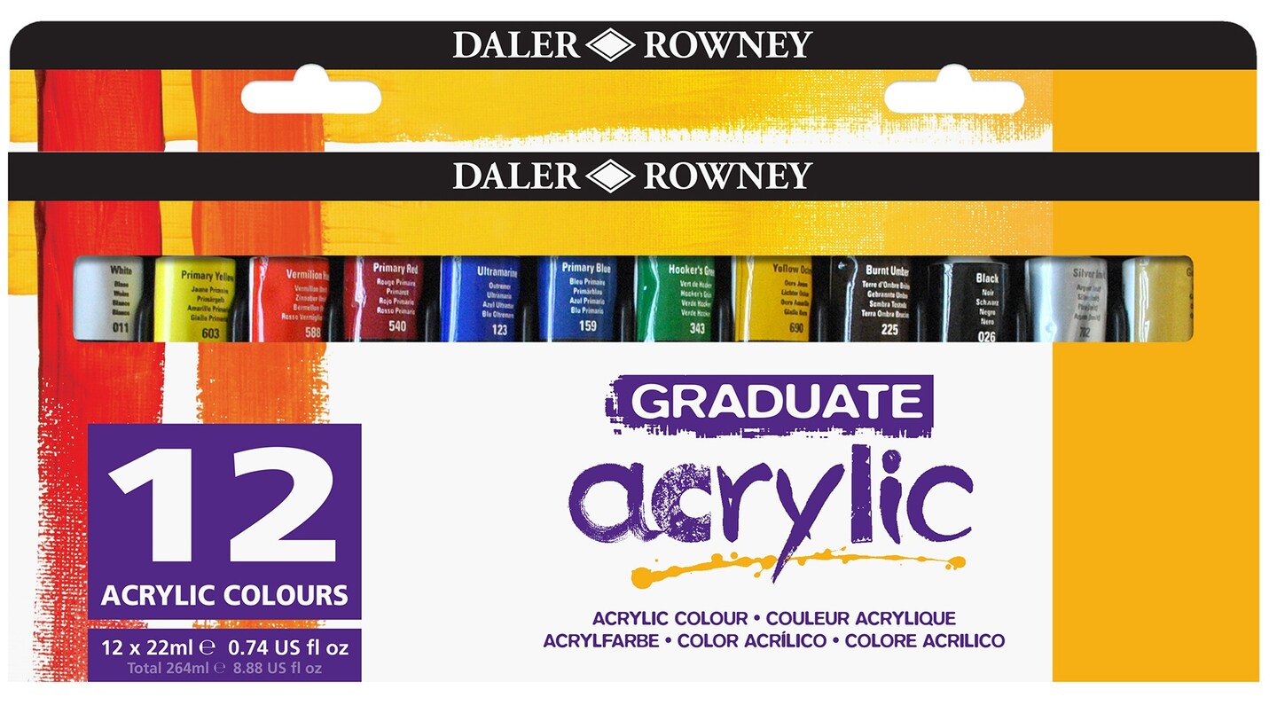 Daler-Rowney Graduate Acrylic Paint Set 22ml 12/Pkg-Assorted Colors