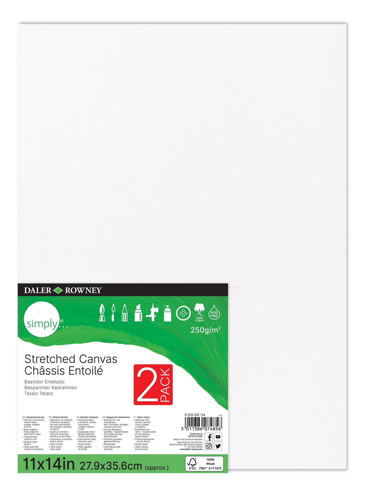 Daler-Rowney Simply Stretched Canvas 2/Pkg-11"X14"