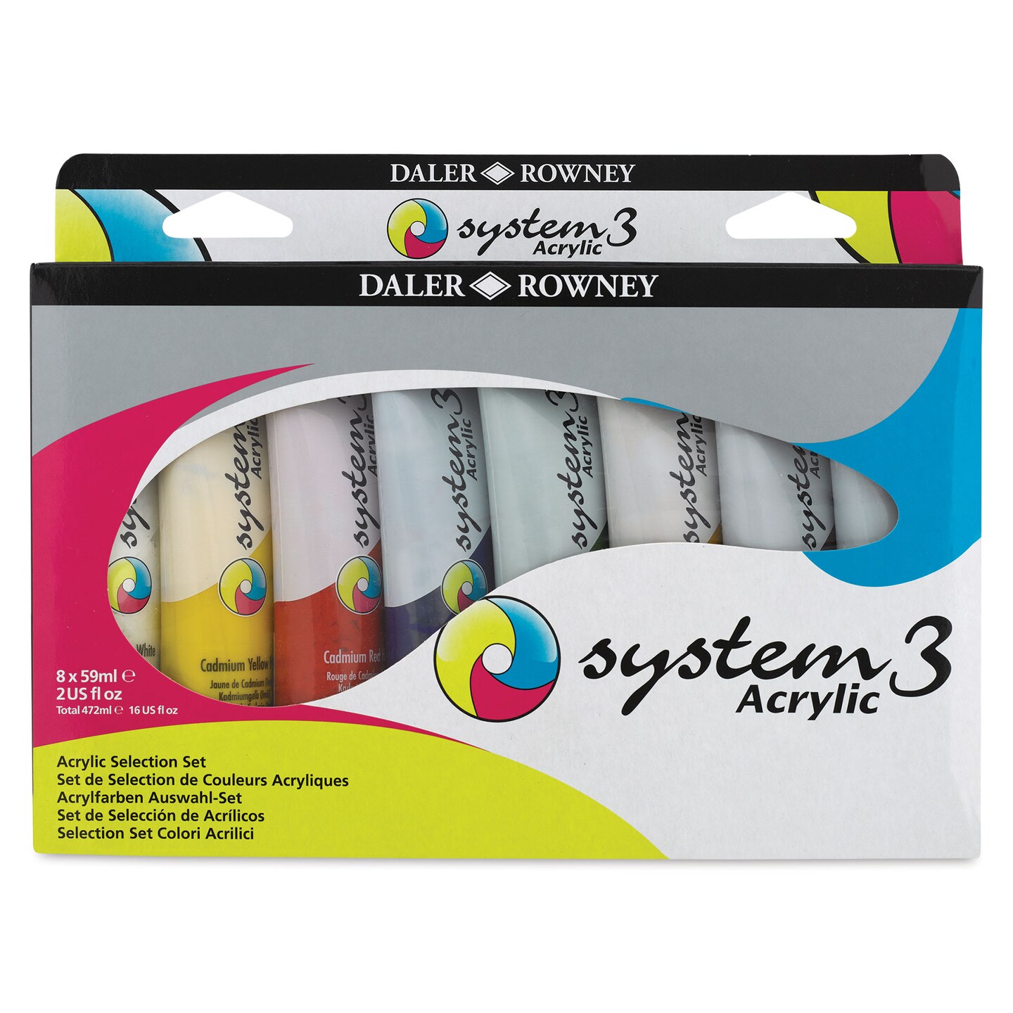 Daler-Rowney System3 Medium Body Acrylic Paints - Set of 8, Assorted Colors, 59 ml