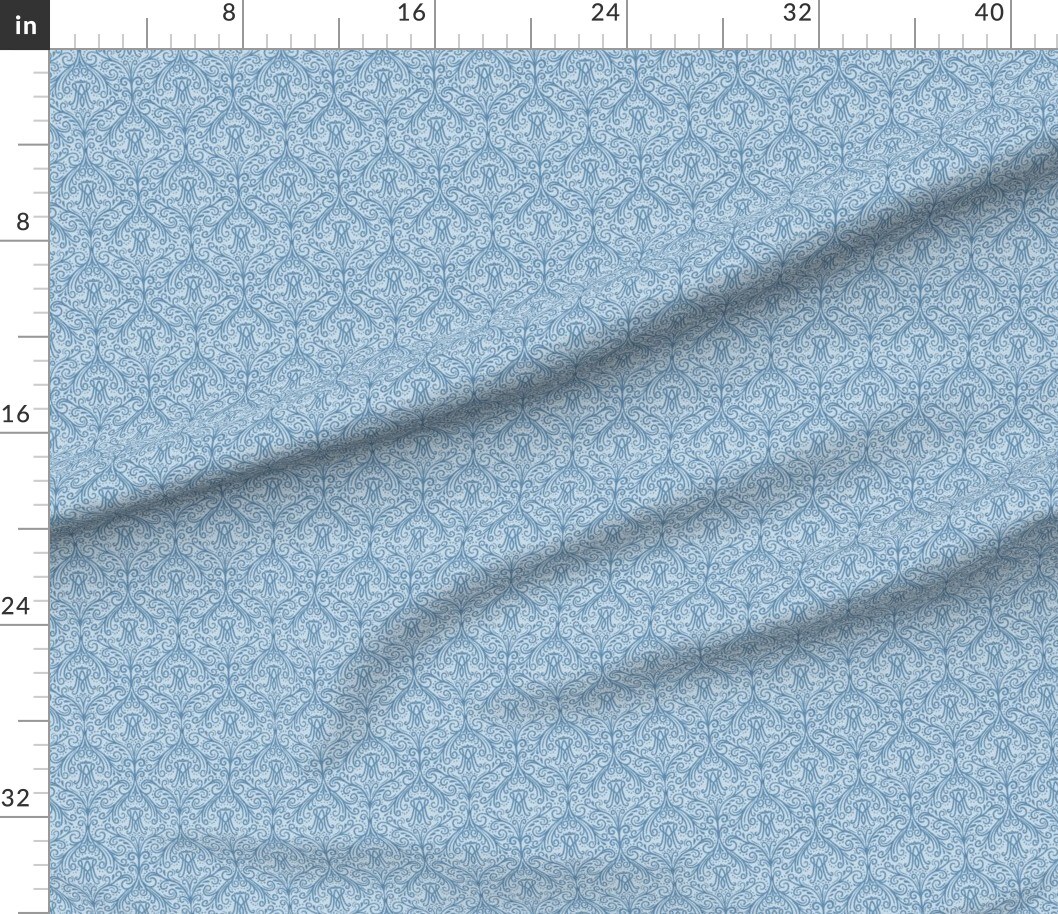 Damask Lines Dots Cross Catholic Mary Latin Auspice Religious Small Scale Blue Abstract Monochrome Custom Printed Fabric by Spoonflower Various Fabrics by the Yard or Fat Quarter