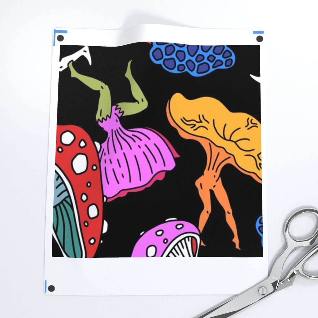 Dancing Mushrooms Colorful Chanterelle 70S Disco Dance Whimsical Custom Pre-pasted Wallpaper by Spoonflower Pre-Pasted Wallpaper 2FT Wide