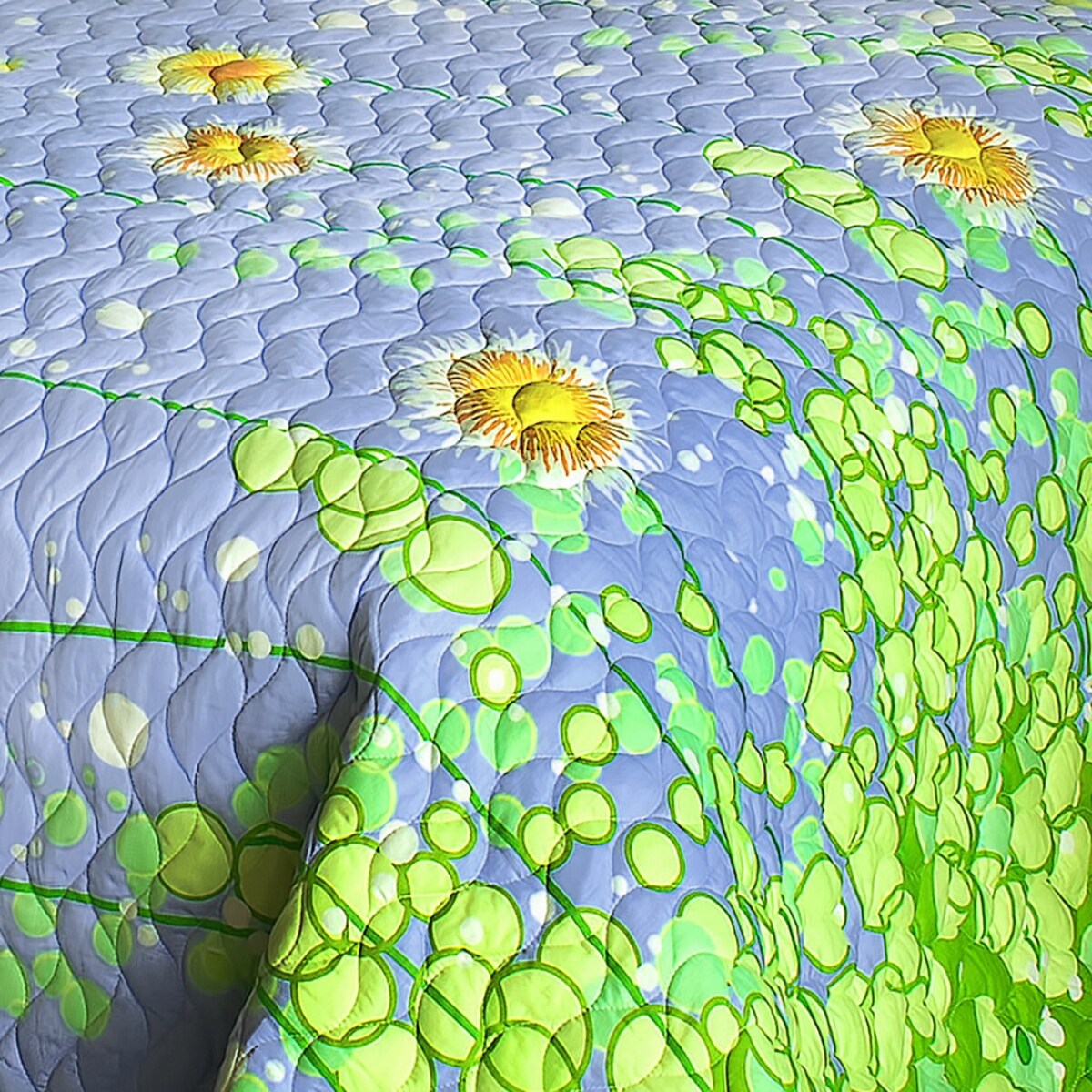 Dandelion Night Handmade Cotton Quilted Bedding Set Reversible Quilt with Sham(s), Vermicelli Stitching