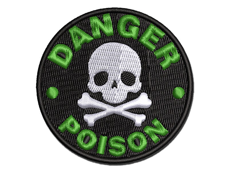 Danger Poison Skull and Cross Bones Multi-Color Embroidered Iron-On or Hook & Loop Patch Applique