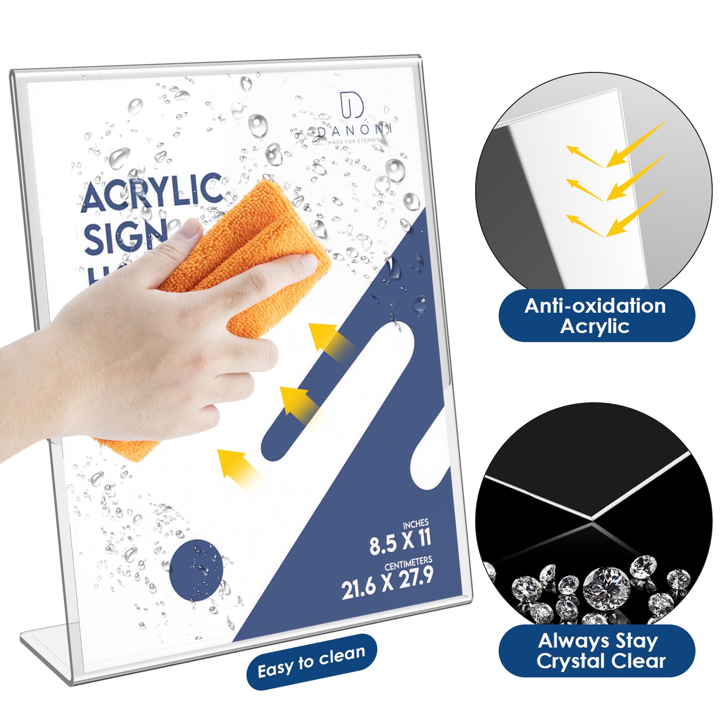 Danoni Clear Acrylic Sign Holder, Document Brochure Display with Vertical Slant - 6 Pack 8.5x11 inches