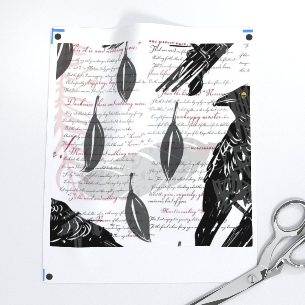 Dark Academia Literature Raven Bird Halloween Poem Edgar Allen Poe Birds Academia Moody Poe 19Th Century Black And White Custom Printed Fabric by Spoonflower Various Fabrics by the Yard or Fat Quarter