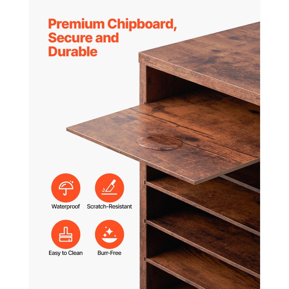 Dark Brown Wooden File Sorter with 36 Compartments for Papers, Books Magazines and Supplies
