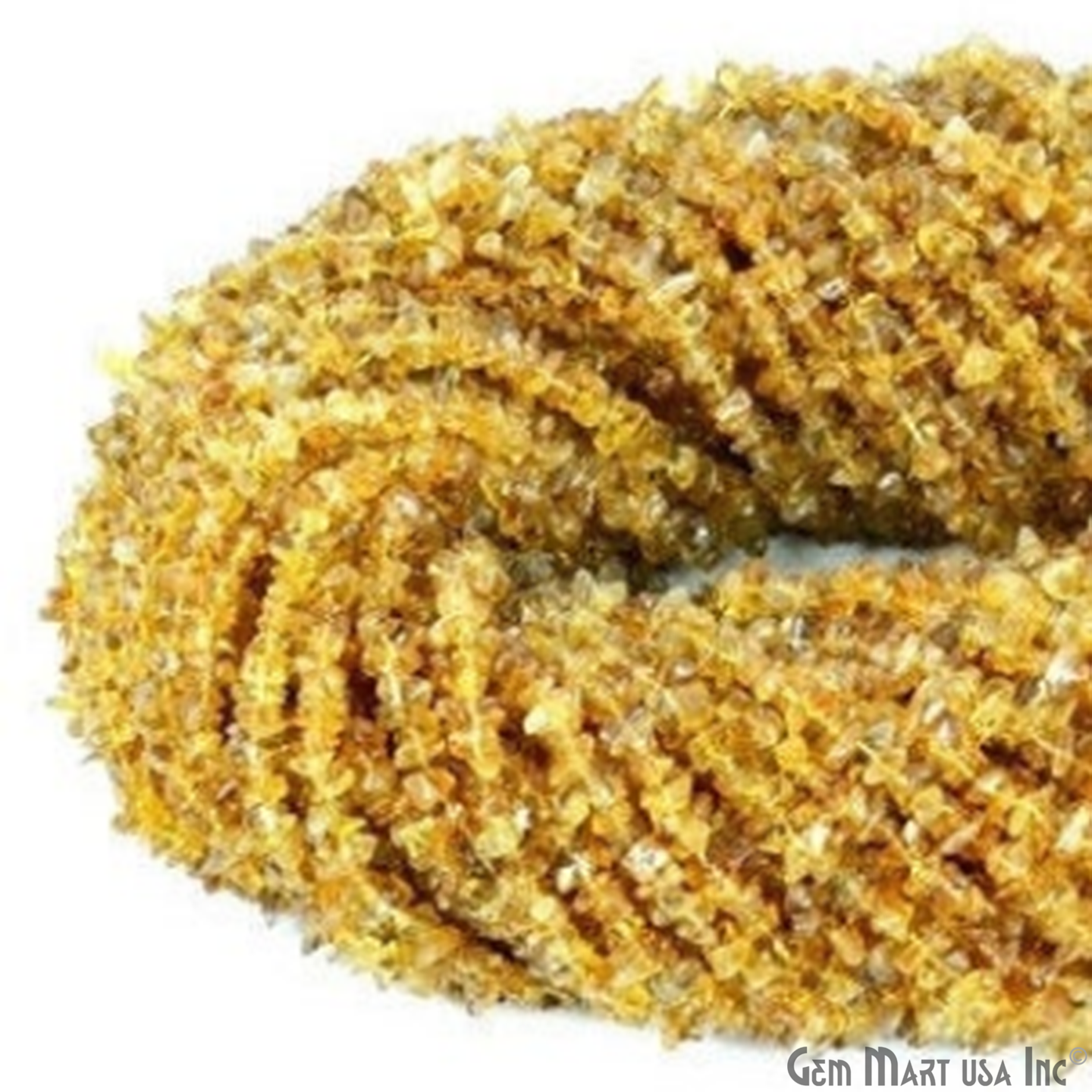 Dark Citrine Chip Beads, 34 Inch, Natural Chip Strands, Drilled Strung Nugget Beads, 3-7mm, Polished, GemMartUSA (CHCI-70002)