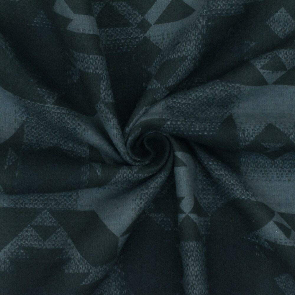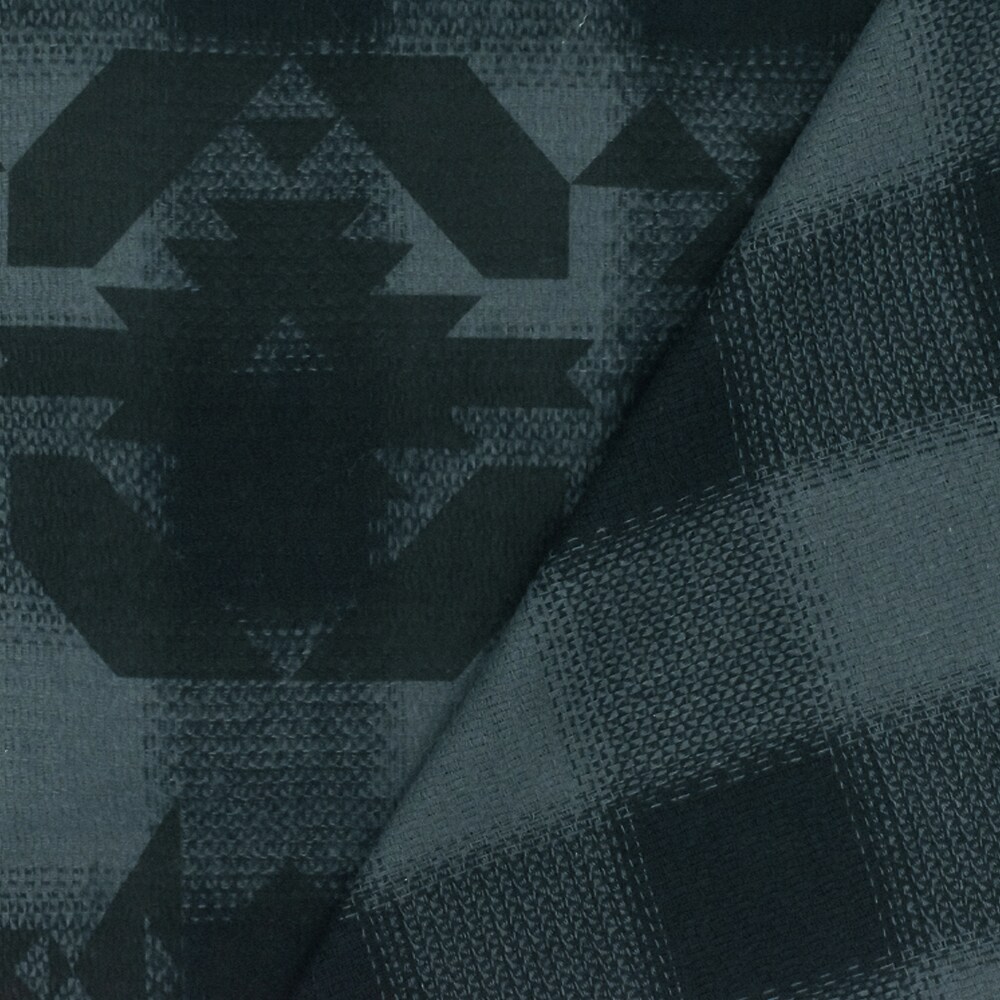 Dark Gray-Black-Multi Tribal Printed Cotton Check Dobby Woven Fabric By the Yard