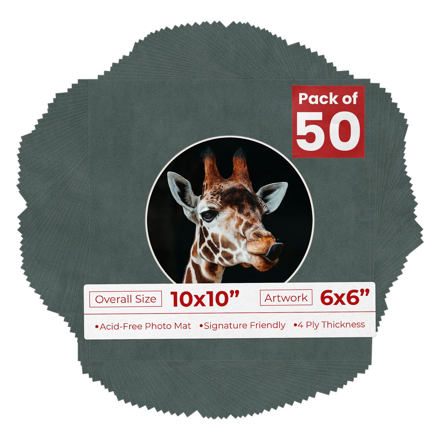 Dark Grey Suede Mat Board for 10x10 Frames - Circle Opening for 6x6 Photos