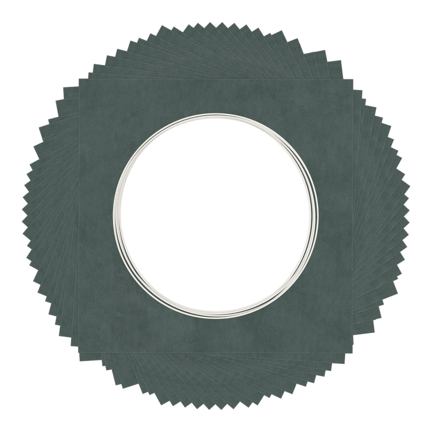 Dark Grey Suede Mat Board for 10x10 Frames - Circle Opening for 8x8 Photos