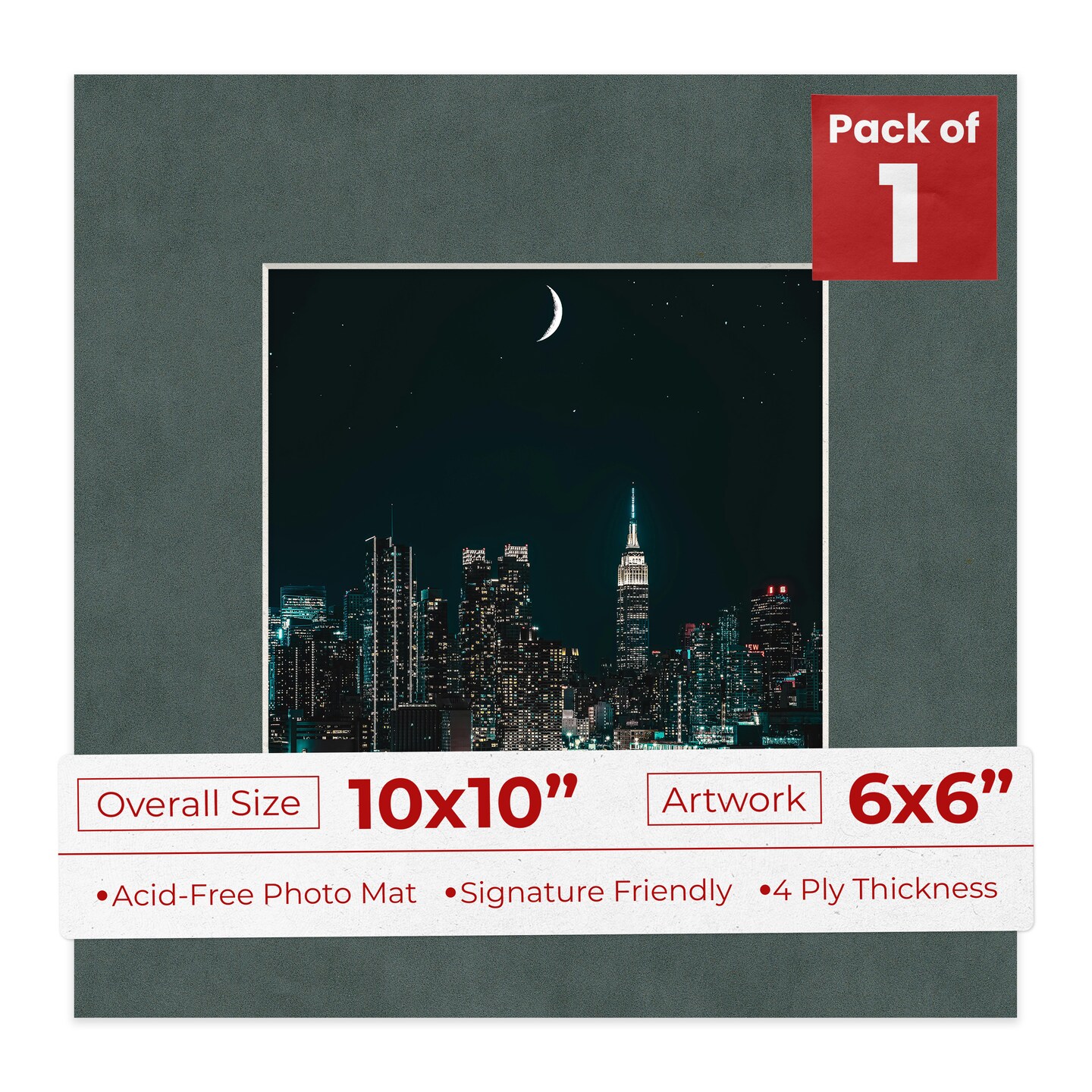 Dark Grey Suede Mat Board for 10x10 Frames - Fits 6x6 Photos
