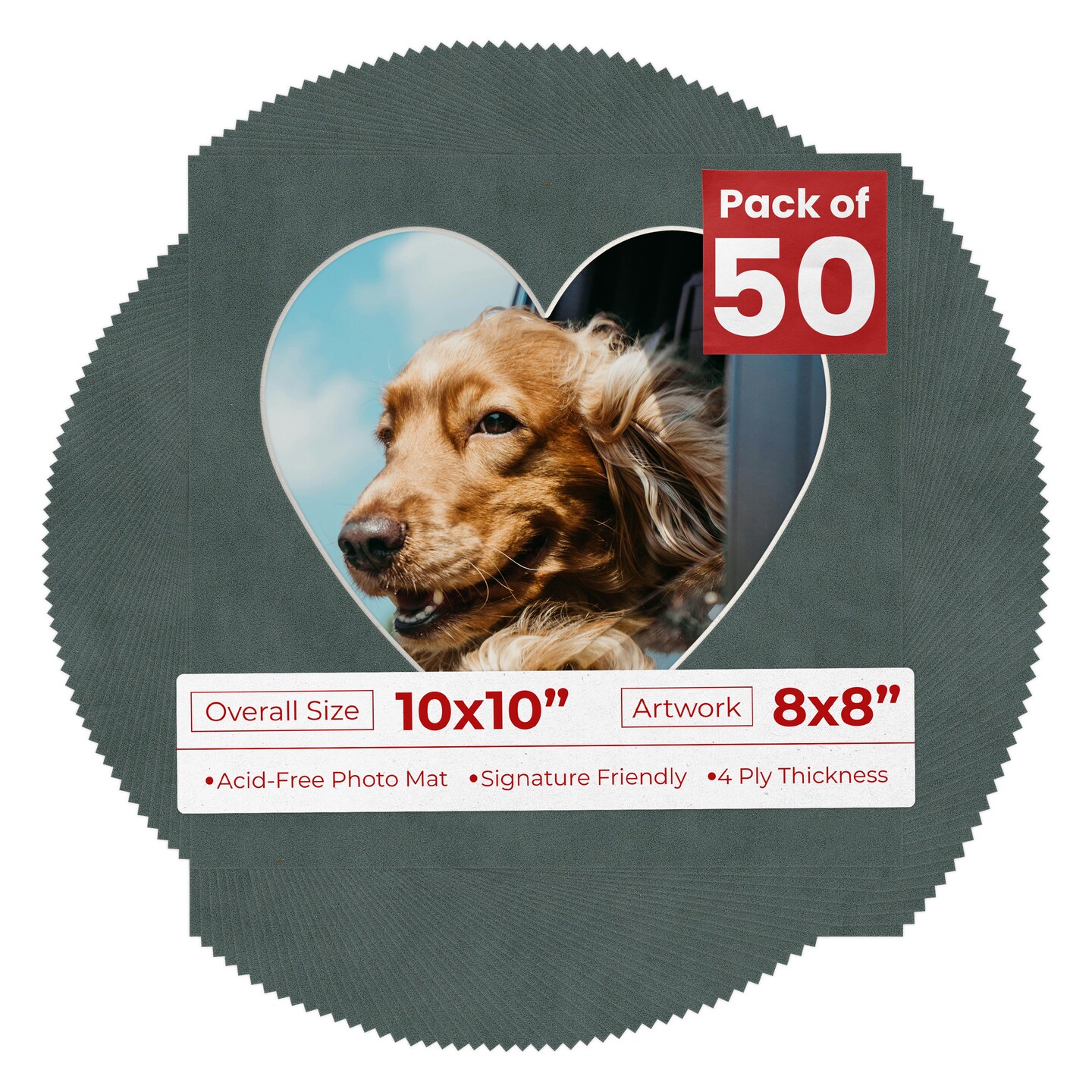 Dark Grey Suede Mat Board for 10x10 Frames - Heart Opening for 8x8 Photos